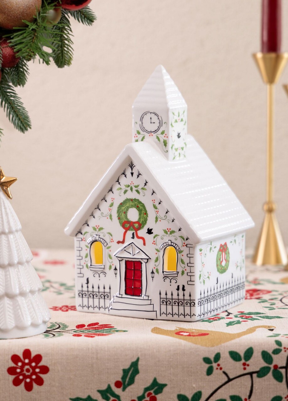 Decoratiune, SUS0226, 13x11x22 cm, Ceramica, Rosu/Alb