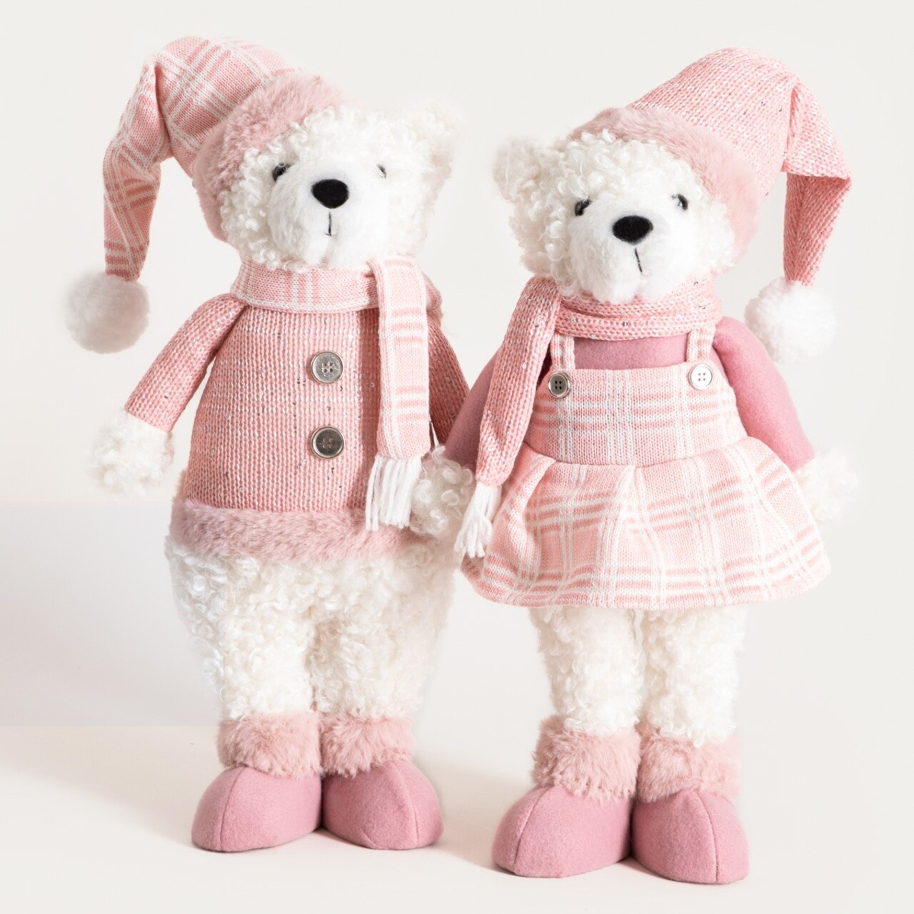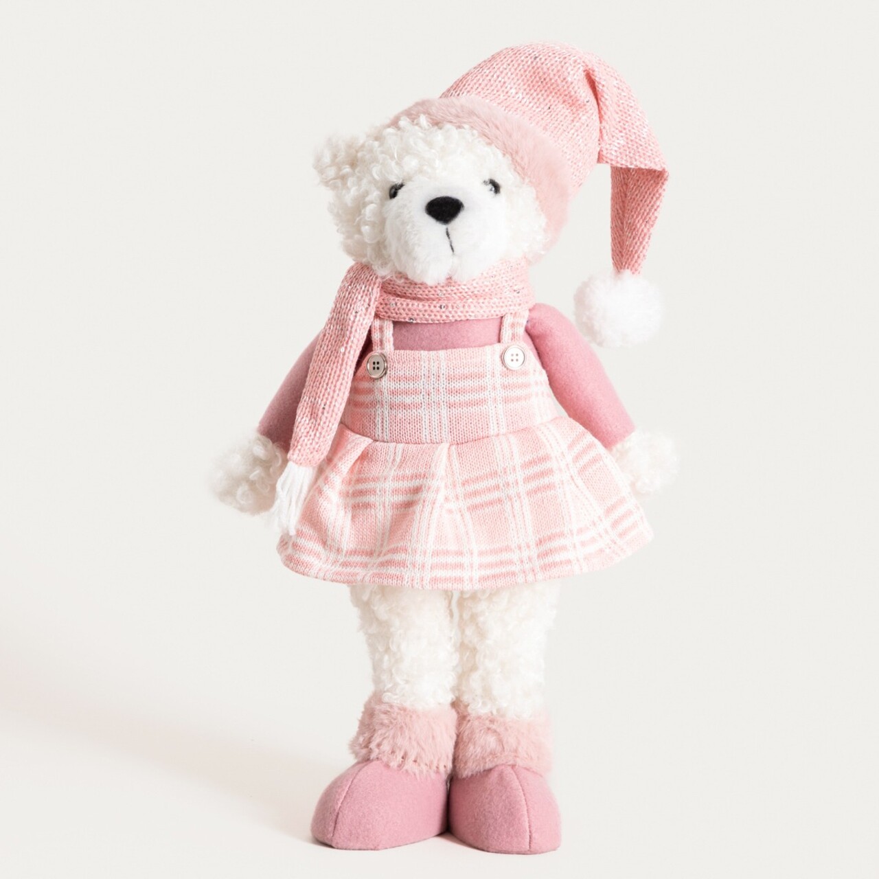 Decoratiune ursoaica Pulise, Homla, 32x15x48 cm, poliester/plastic, roz/alb