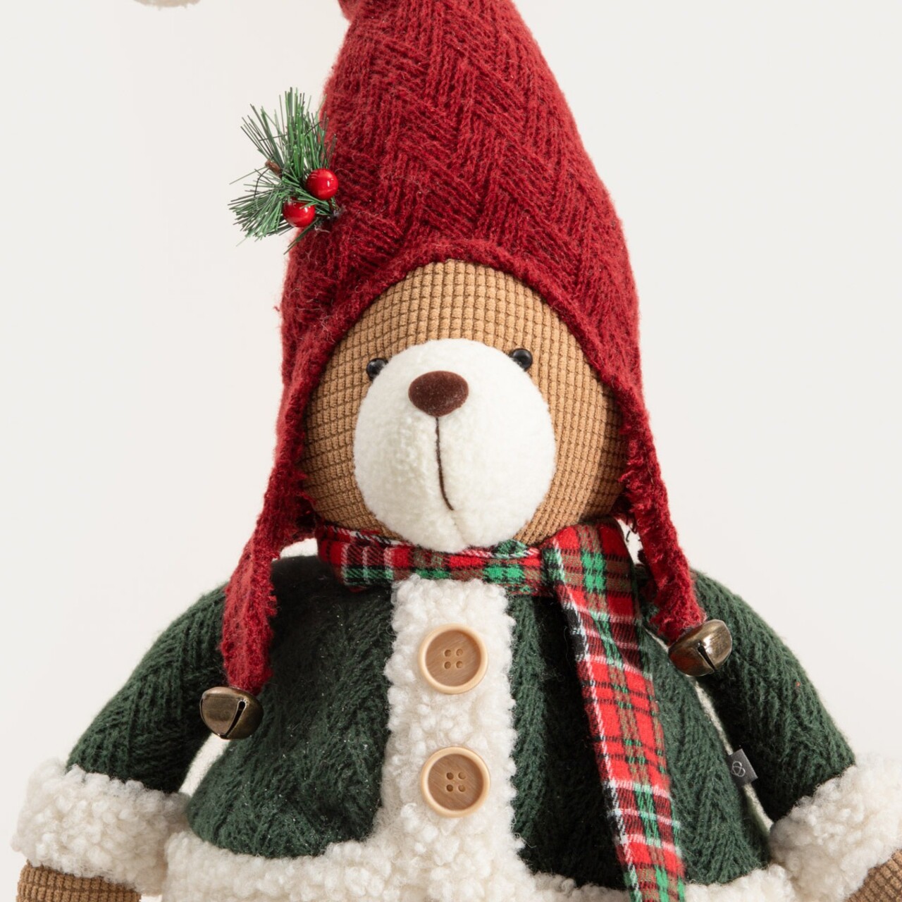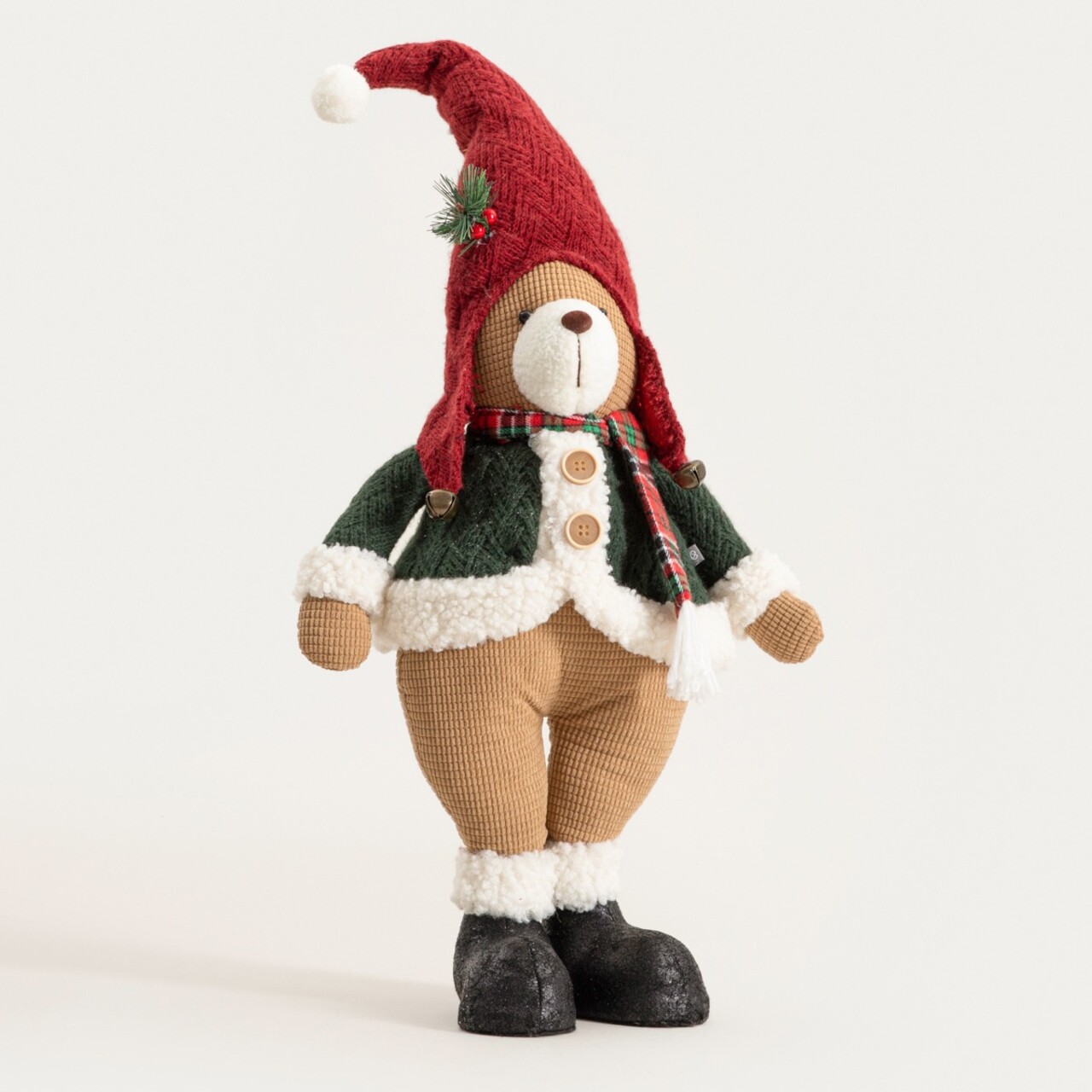Materialele de cea mai inalta calitate fac ca figurina sa arate ca si cum ar fi aparut direct dintr-un basm de Craciun. Caciula are un model tricotat, iar jacheta si pantalonii ursuletului de plus sunt finisate cu piele de oaie sintetica. Decoratiunea nu este o jucarie si nu este destinata copiilor.