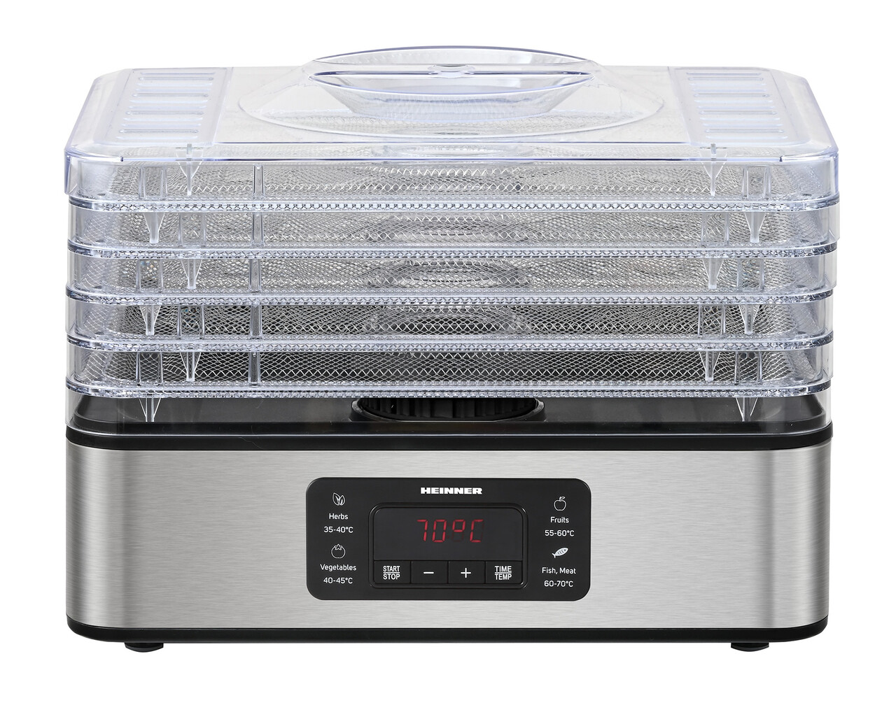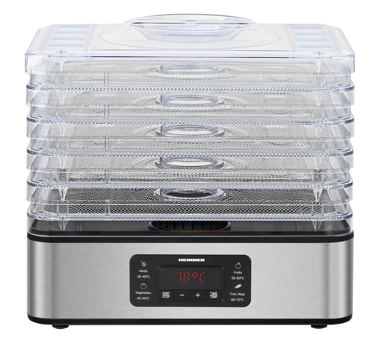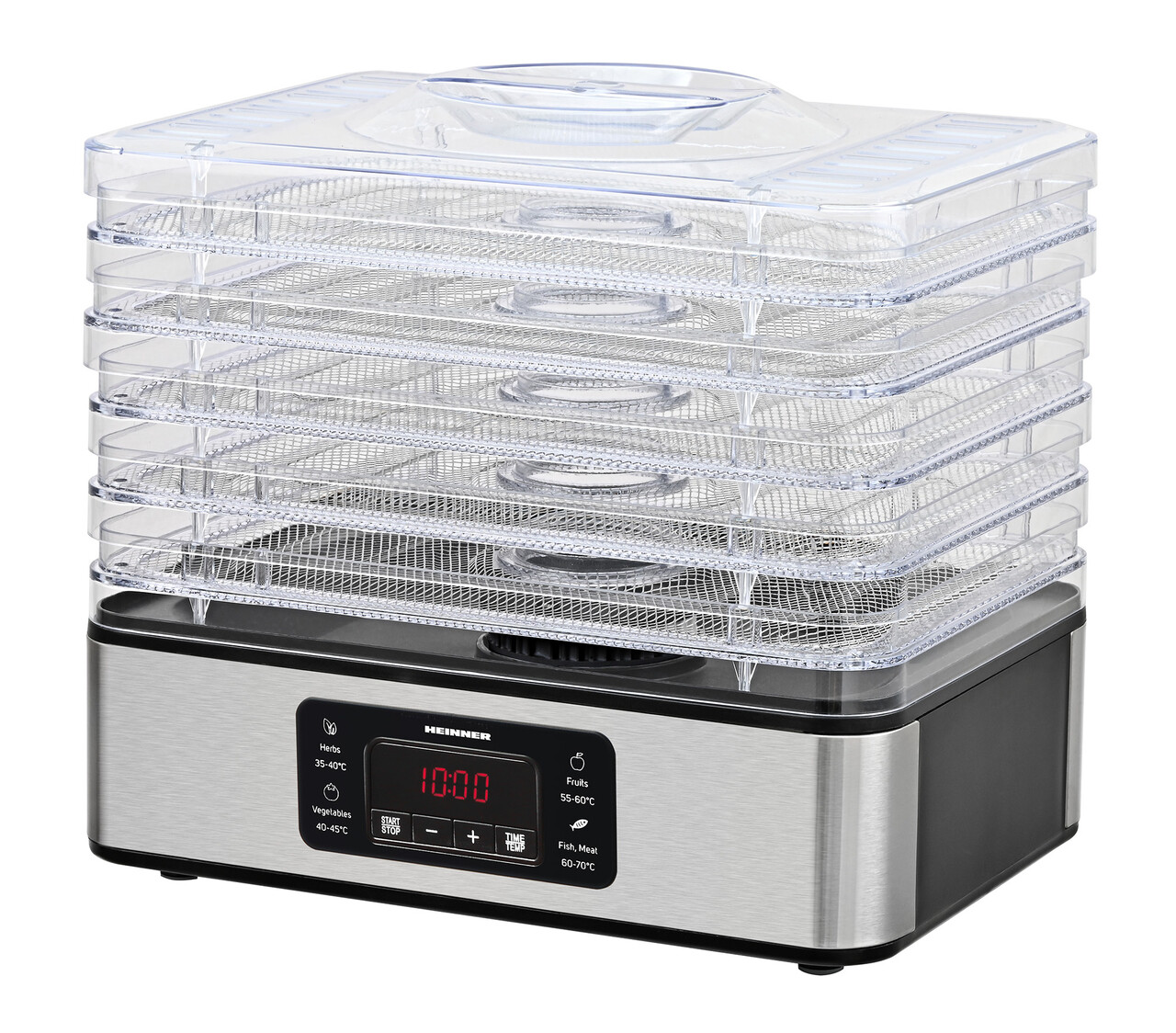 Deshidrator fructe si legume Drymaster Pro, Heinner, 320-380W, plastic/inox, argintiu/transparent