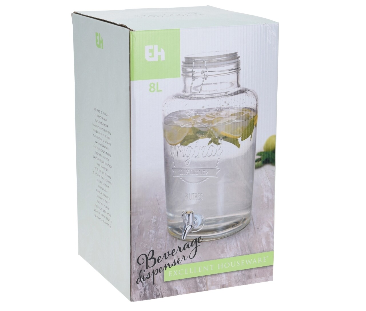 Acest dispenser din sticla este ideal pentru servirea limonadei, punch-ului sau al altor bauturi racoritoare la petreceri sau acasa. Este prevazut cu un robinet usor de utilizat si rezistent.