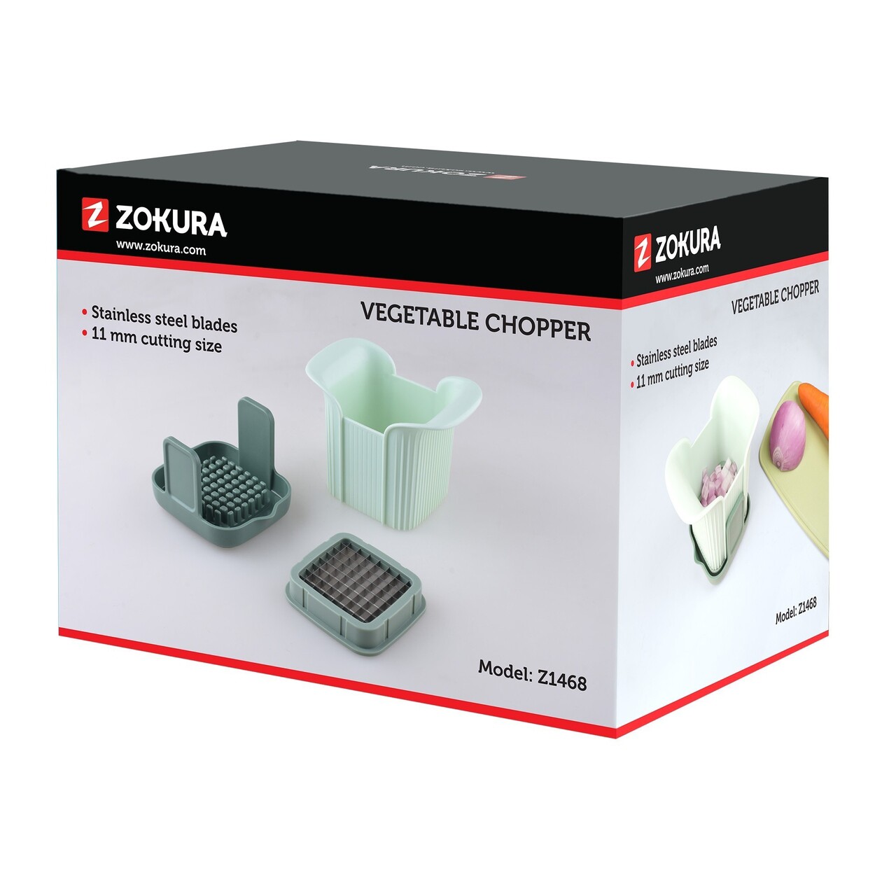 Dispozitiv pentru feliat cartofi si tocat legume, Marca Zokura, Confectionat din Plastic De inalta calitate, Prevazut cu lama din inox.