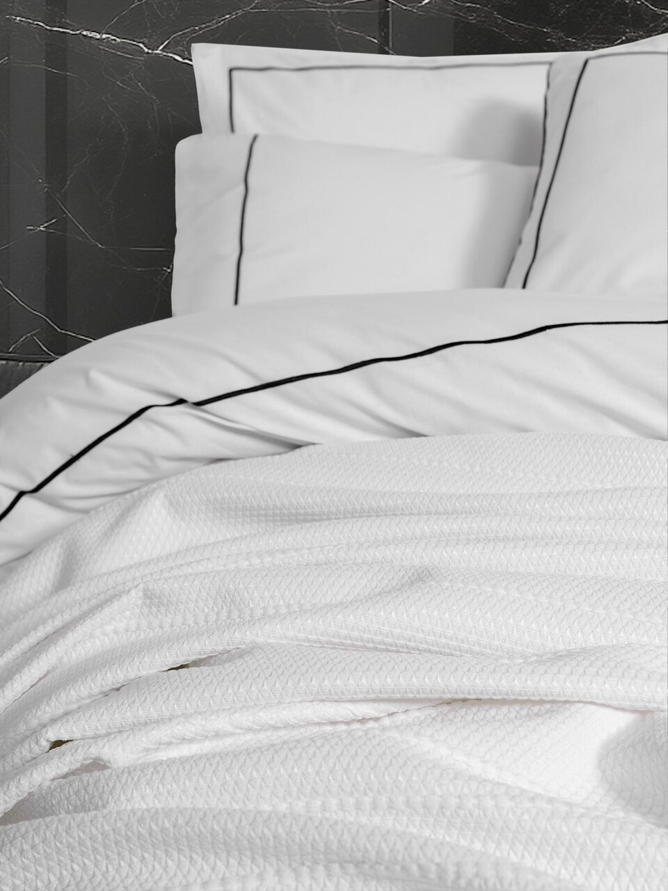 Double Quilt Cover Set & Pique, L'essentiel Maison, Mahur, Bumbac, Alb