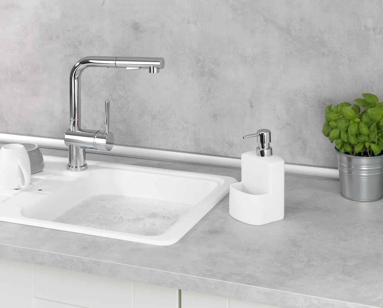 Dozator detergent lichid cu suport burete, Wenko, True Colors Festival, 380 ml, 10 x 18 x 10 cm, ceramica, alb