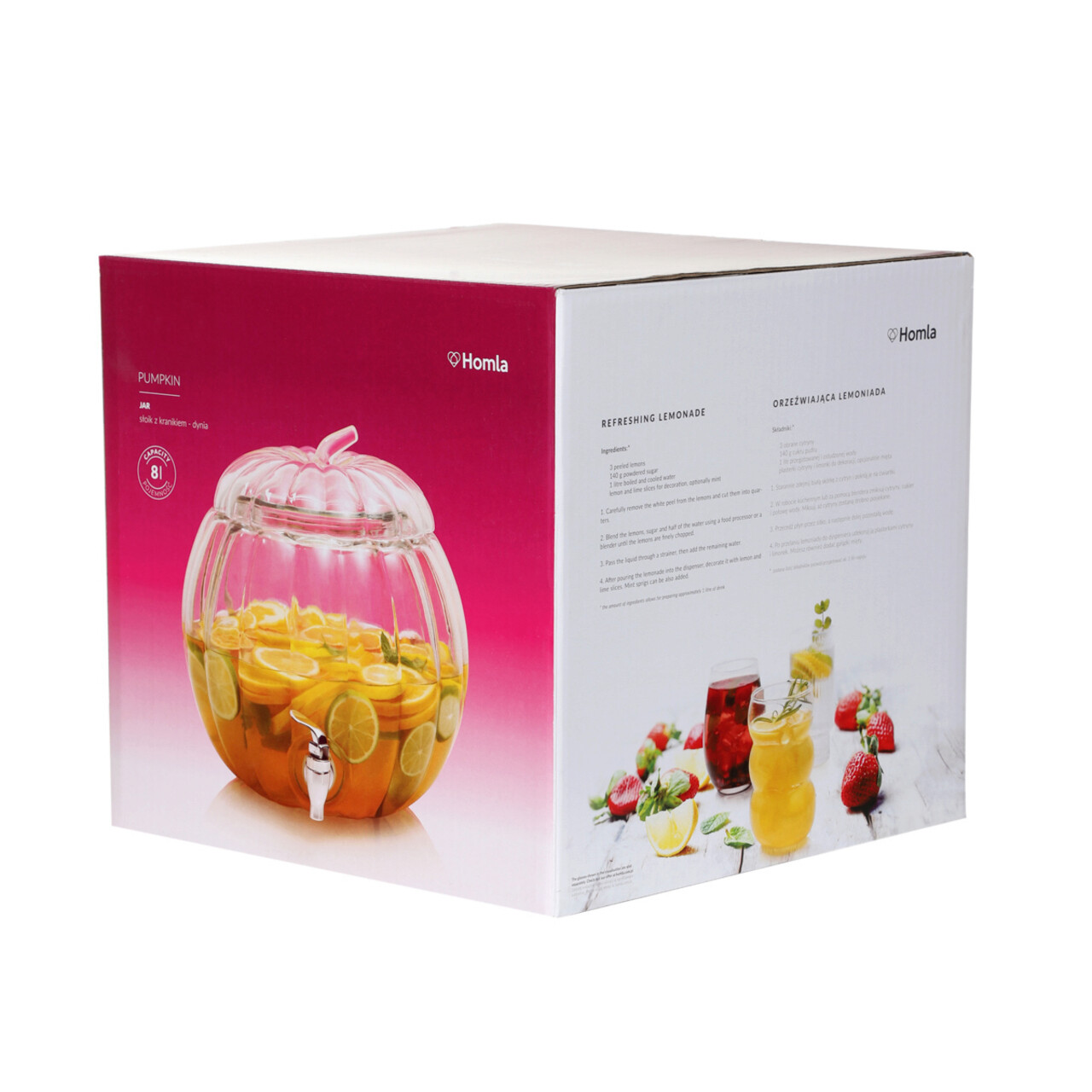 Dozator pentru bauturi Pumpkin, Homla, 8 L, sticla, transparent