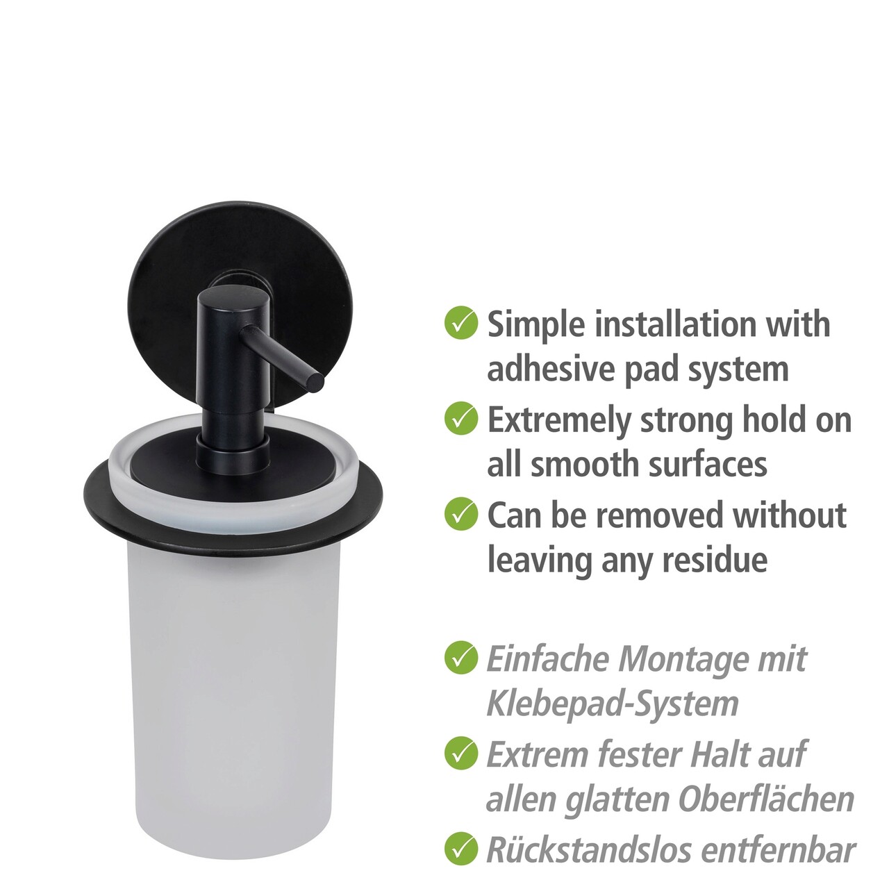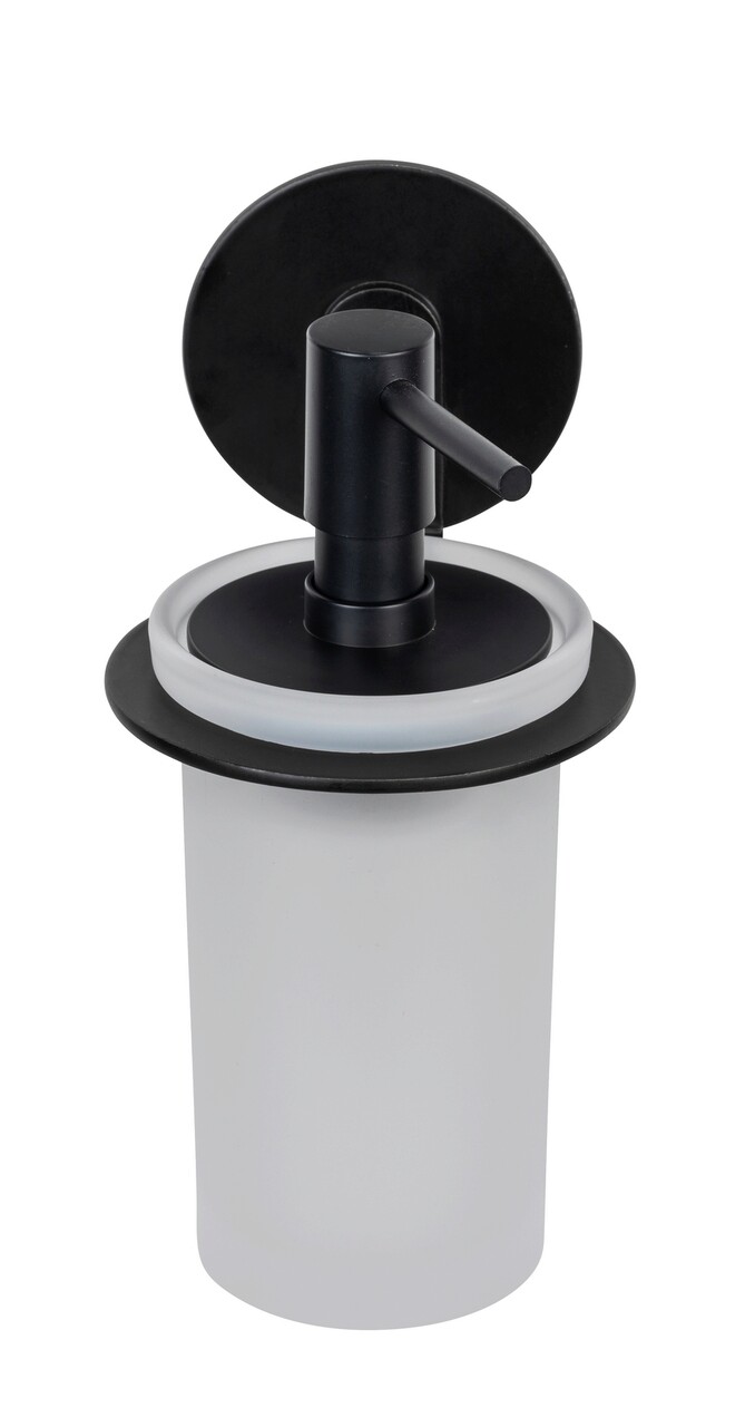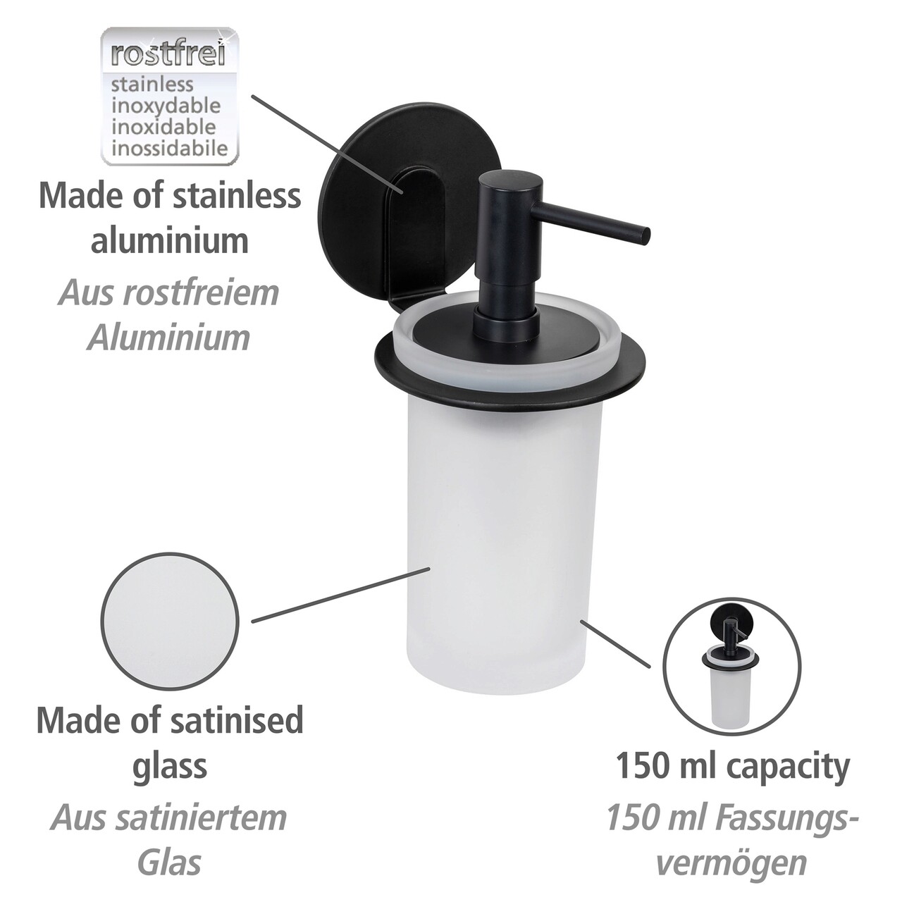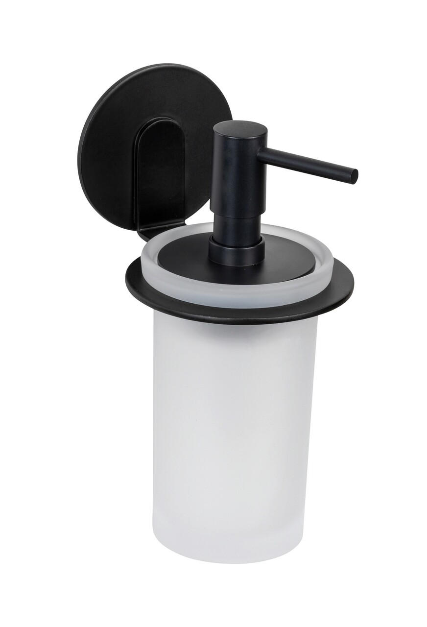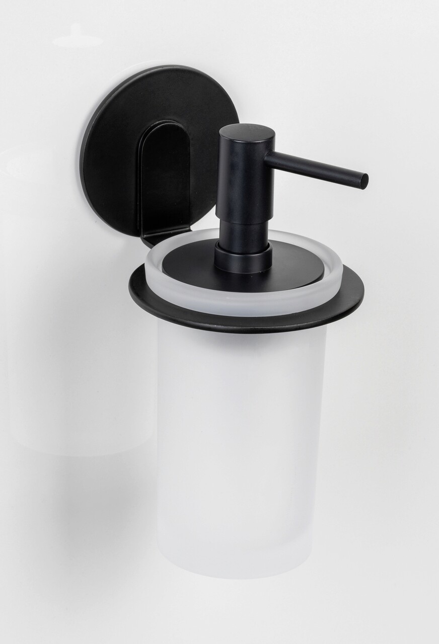Dozator sapun lichid Bivio, Wenko, 8.5x10.5x16.5 cm, aluminiu/sticla, negru/alb