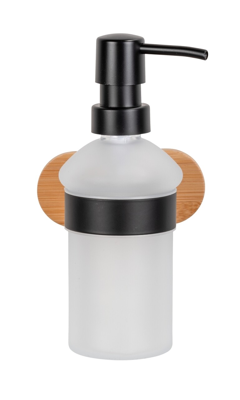 Dozator sapun lichid cu sistem Turbo-Loc®, Wenko, Orea, 300 ml, 10 x 18 x 12 cm, bambus/inox/sticla, natur/negru