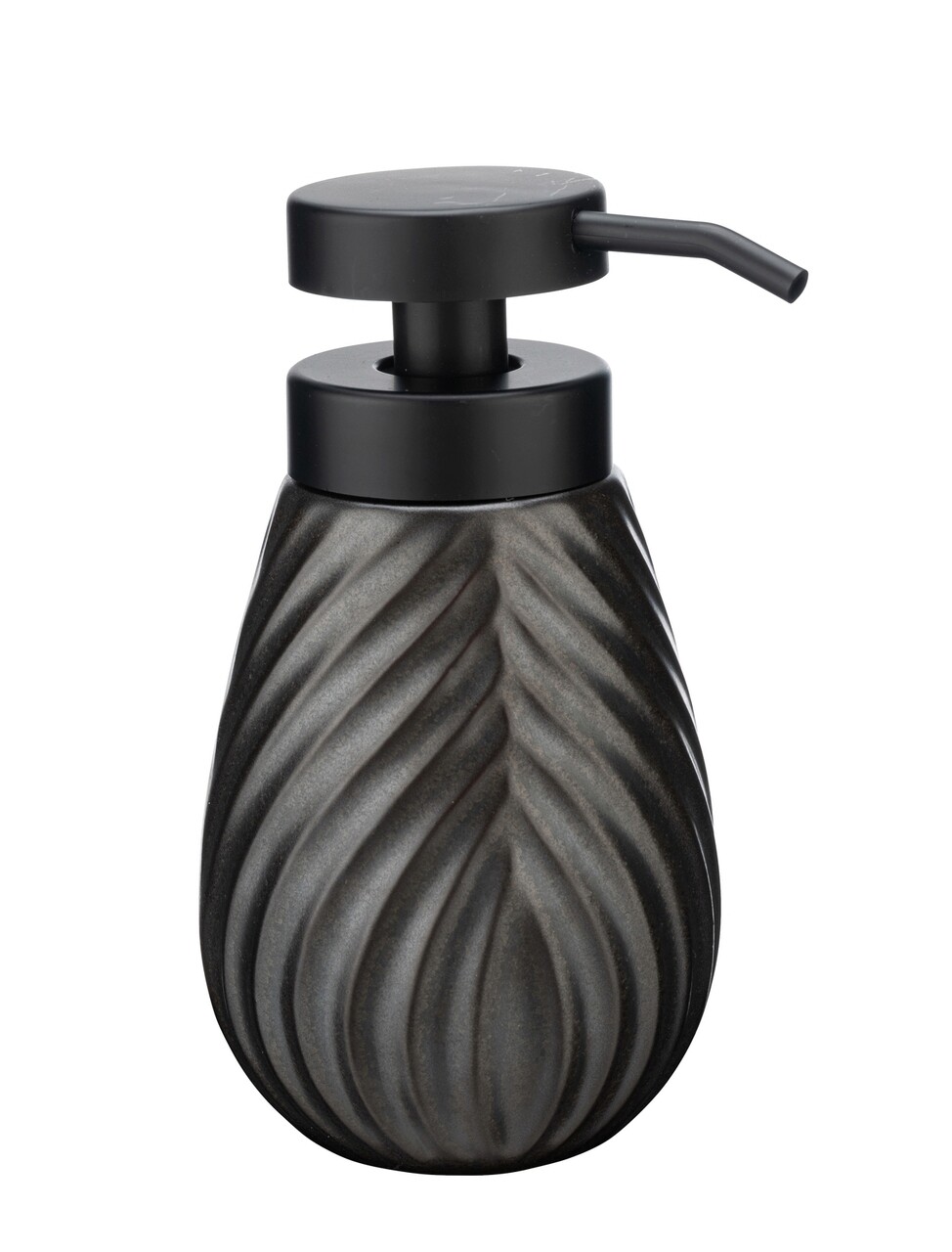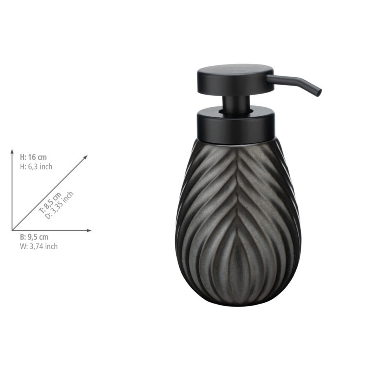 Dozator sapun lichid Idro, Wenko, 9.5x8.5x16 cm, ceramica/plastic, gri inchis/negru
