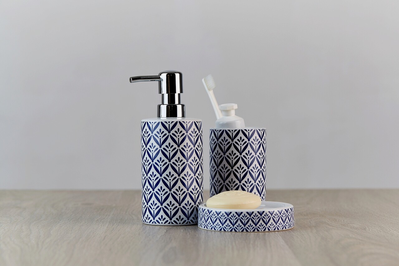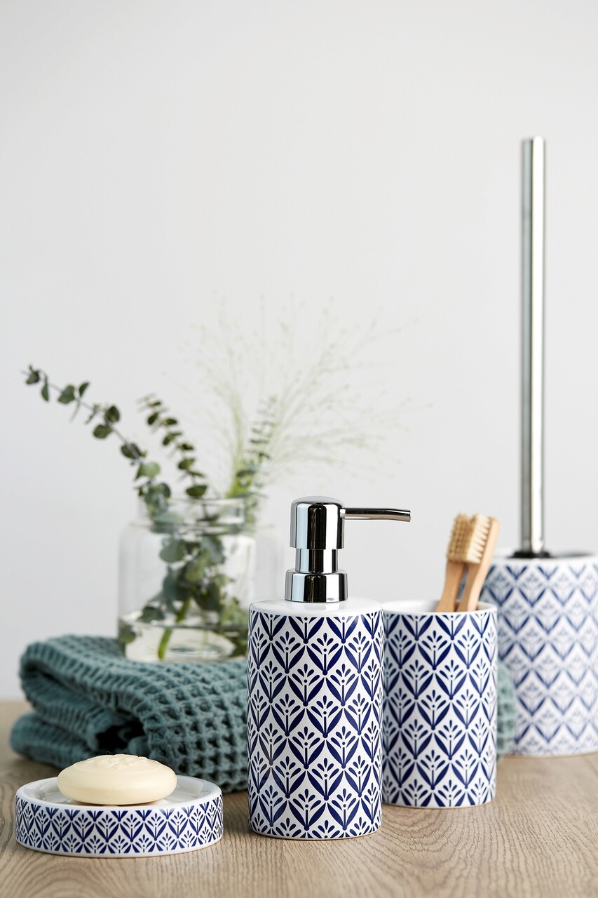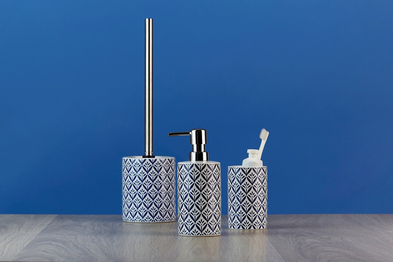 Seria de accesorii pentru baie de inalta calitate Lorca de la WENKO adauga baii dumneavoastra o ambianta mediteraneana. Accesoriile sunt realizate din ceramica de inalta calitate si au imprimeu color cu model mediteranean albastru pe fundal alb.
