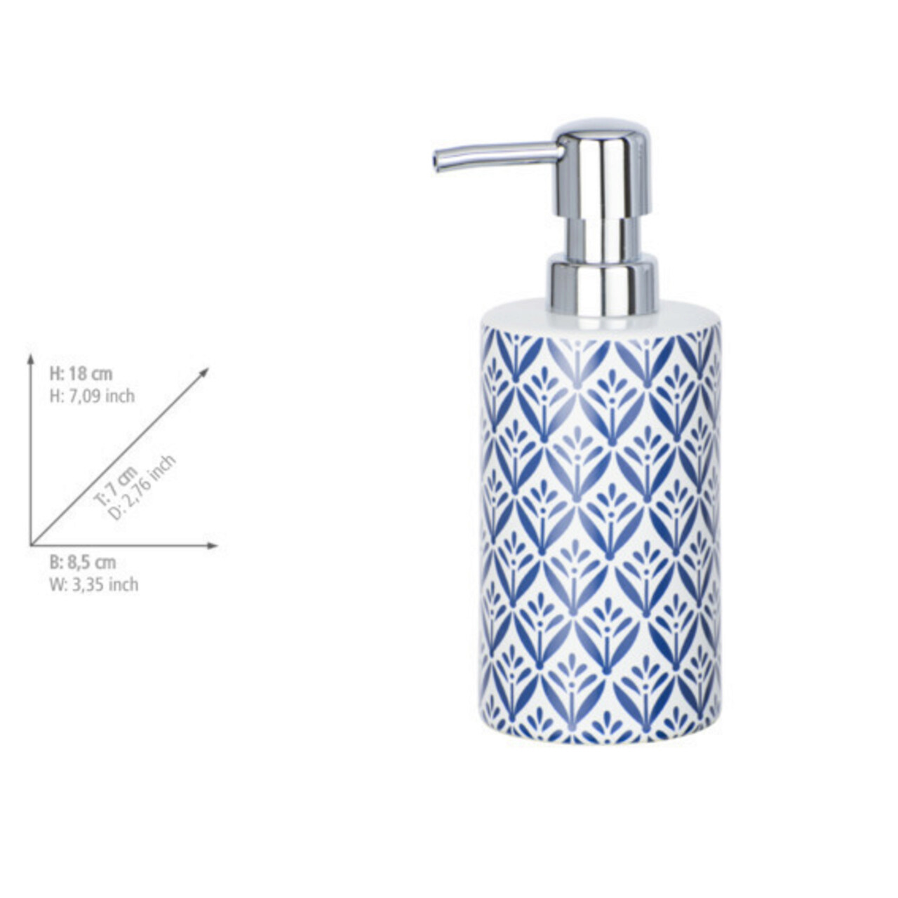 Dozator sapun lichid Lorca, Wenko, 8.5x7x18 cm, ceramica, albastru/alb