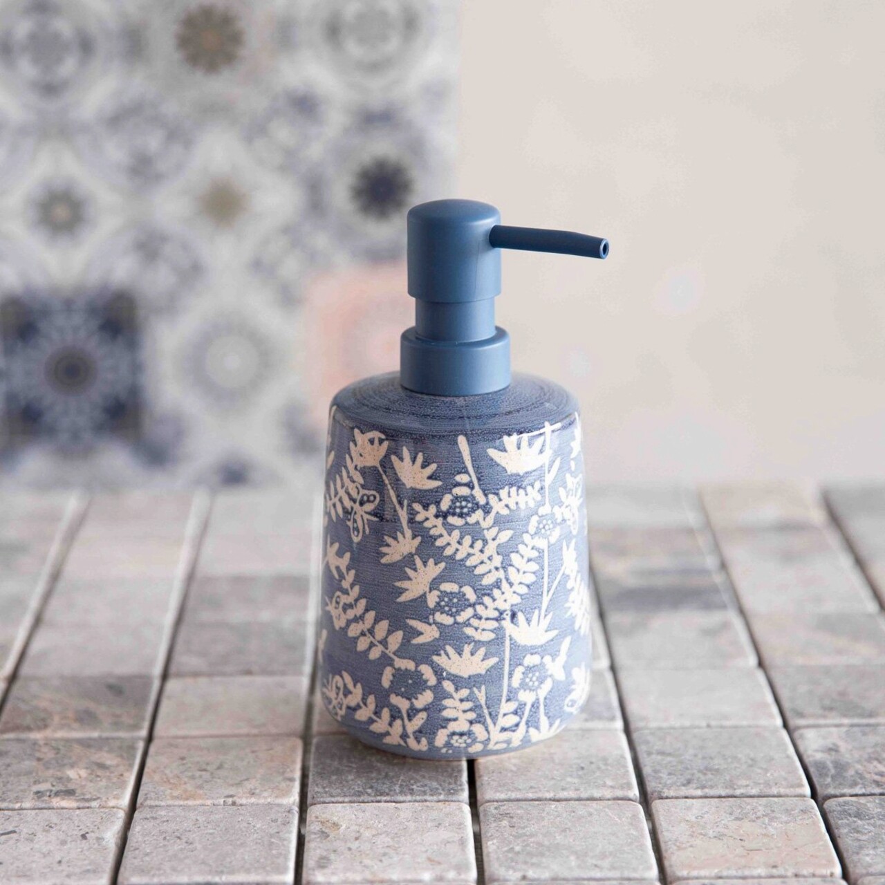 Dozator sapun lichid Mirabel, Homla, 8.5x17 cm, ceramica, albastru/alb