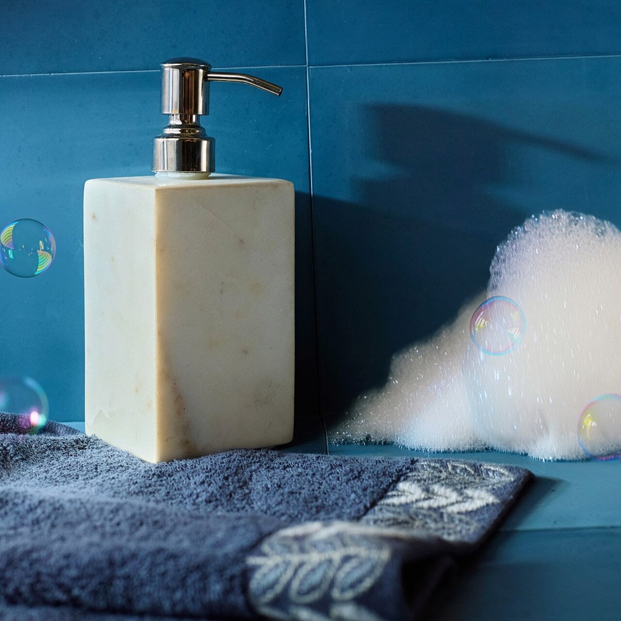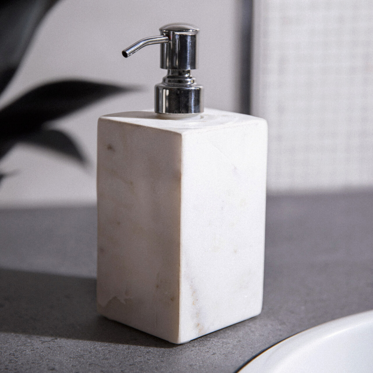 Marmura este un material exclusivist care se potriveste perfect intr-o varietate de decoruri - de la minimalist si scandinav pana la glamour. Dozatorul de baie NYLLA HOMLA are un recipient din marmura intr-o frumoasa nuanta alb crem. Este echipat cu o pompa, astfel incat sa puteti doza rapid si curat o portie de sapun lichid.