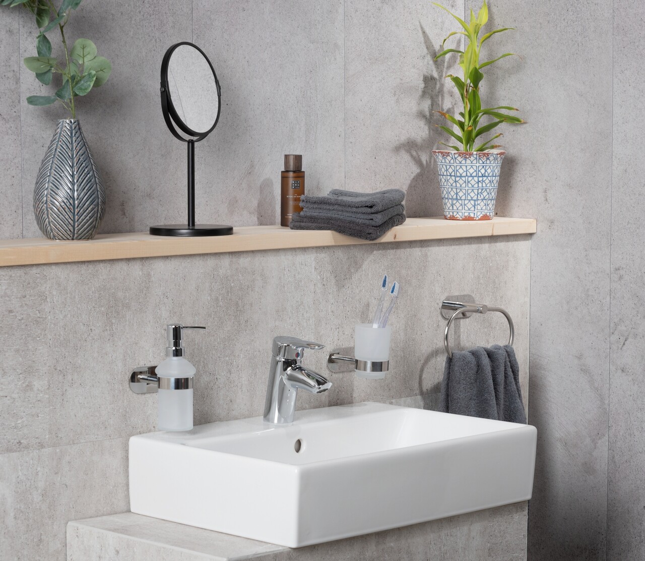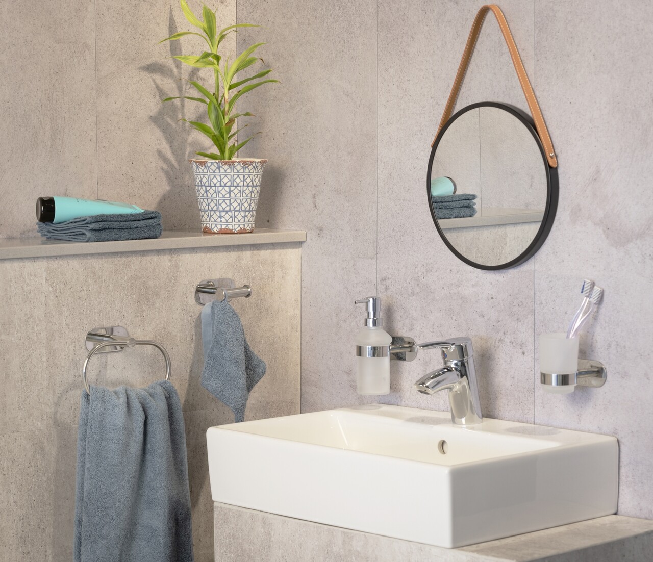 Montarea este foarte usoara. Elementul de montare pe perete Turbo-Loc® este un sistem de tampon adeziv cu o prindere extrem de puternica pe toate suprafetele netede. Pur si simplu dezlipiti suportul tamponului adeziv, fixati suportul in pozitia dorita si apasati. Tamponul adeziv poate fi indepartat din nou fara a lasa reziduuri.