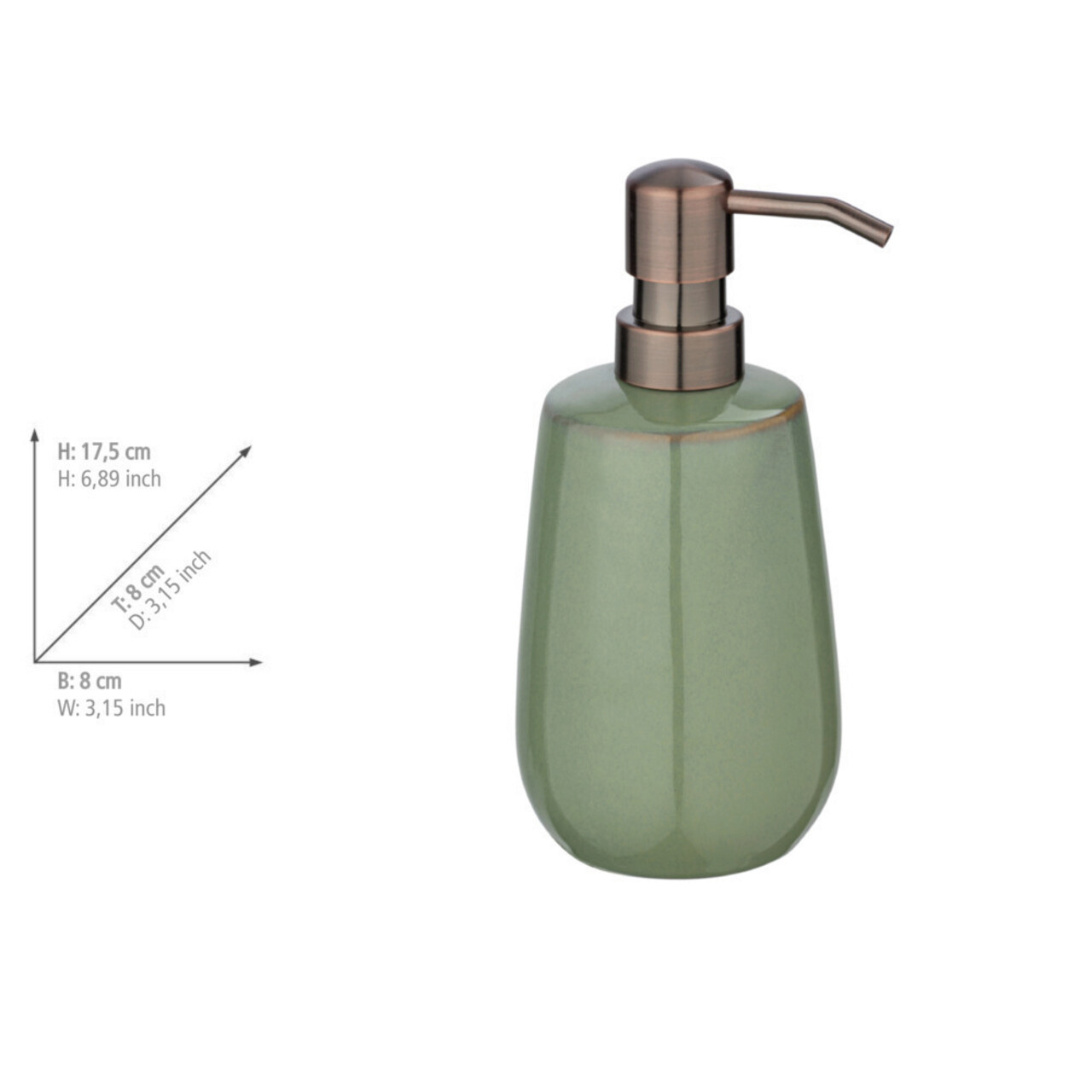 Dozator sapun lichid Sirmione, Wenko, 8x17.5 cm, ceramica/ABS, verde/aramiu