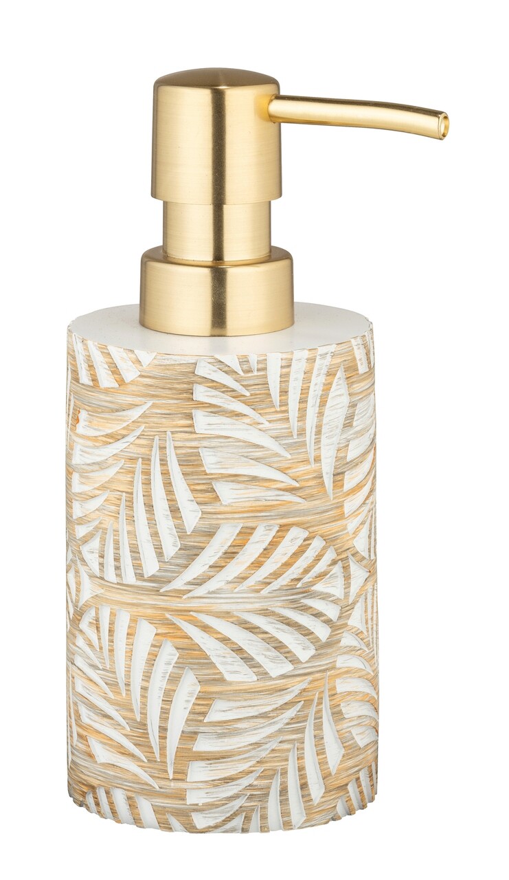 Dozator sapun lichid Terralba, Wenko, 9x7x16 cm, polirasina/plastic, alb/auriu