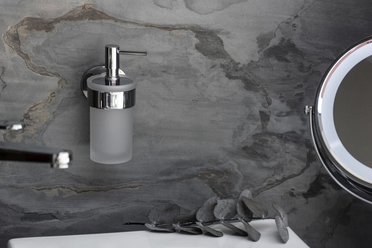 Dozator sapun lichid, Wenko, UV-Loc, Maribor, 8.5 x 17 x 9 cm, metal/sticla