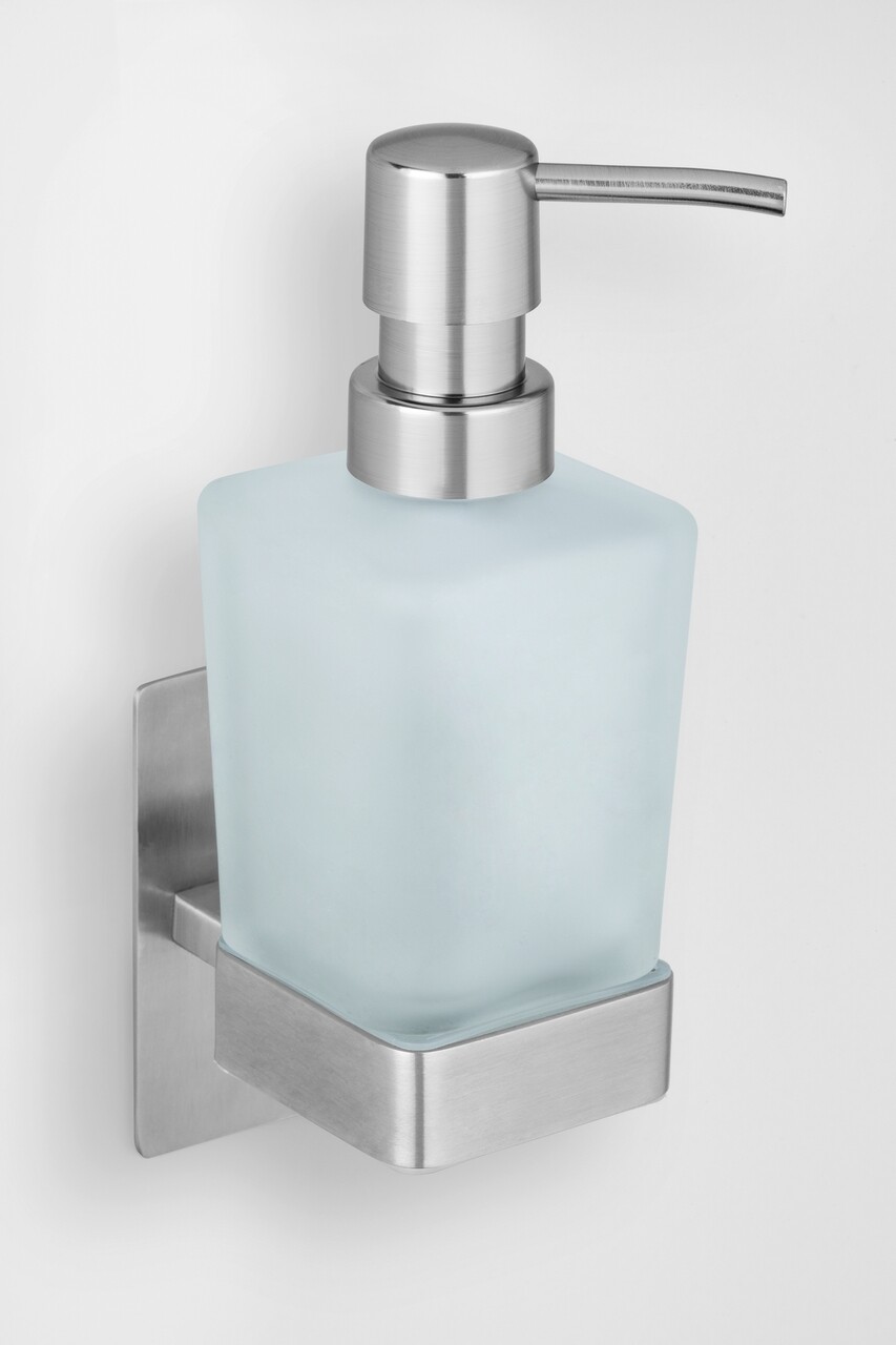 Dozator sapun lichis cu suport, Wenko, Turbo-Loc, Genova Matt, 6.2 x 19.7 x 9 cm, inox/sticla