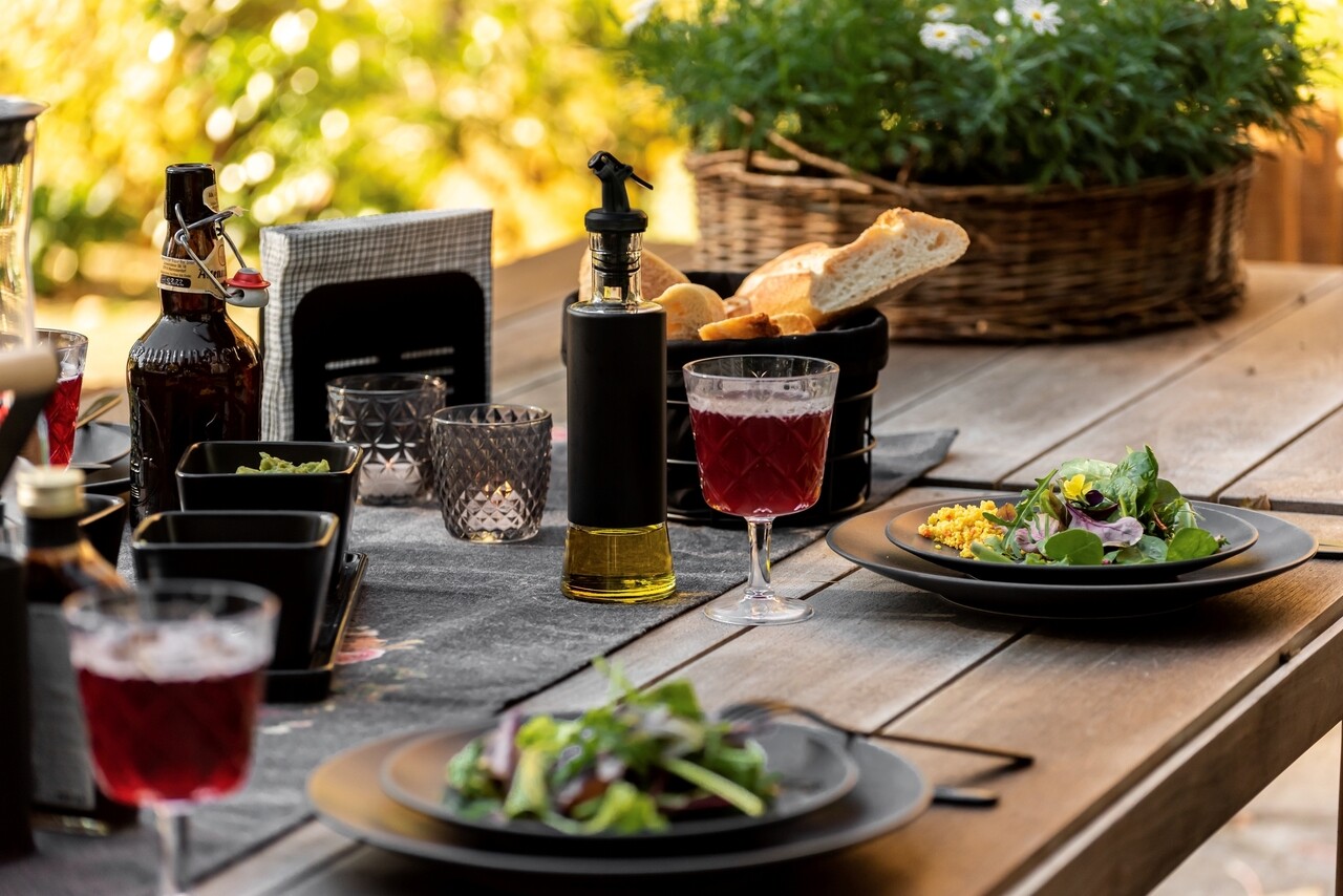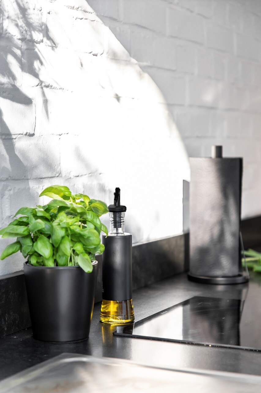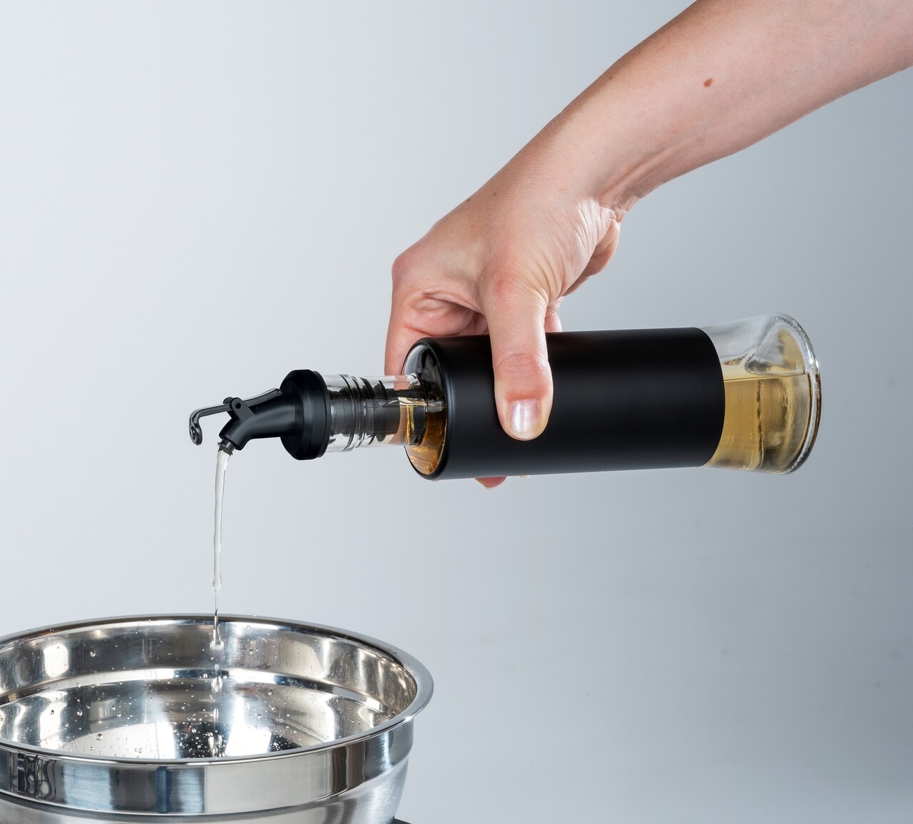 Dozator ulei/otet, Wenko, Boga, 300 ml, sticla/inox/plastic, negru/transparent