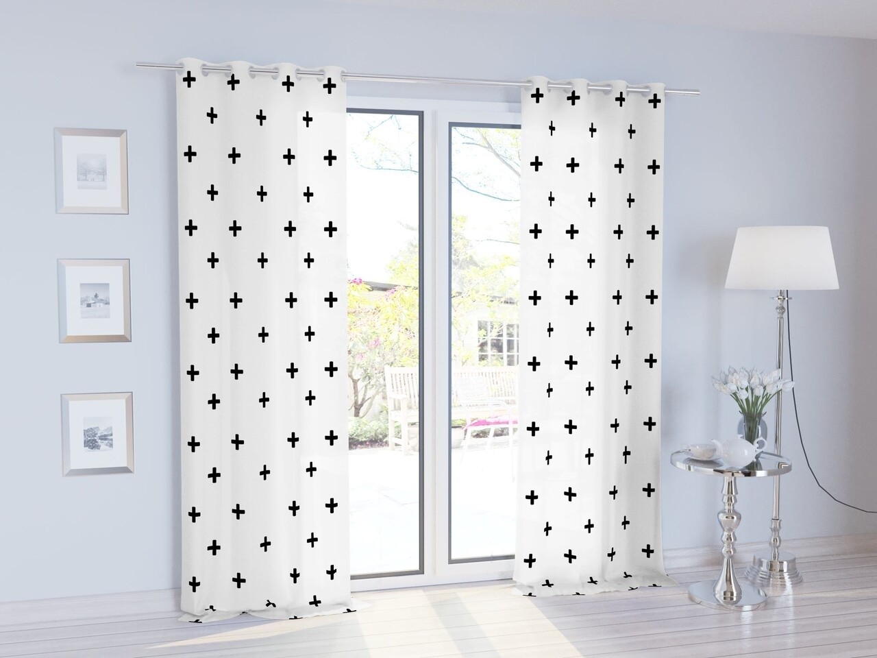Draperie Cross Biala, Fashion Goods, 140x250, poliester, alb/negru