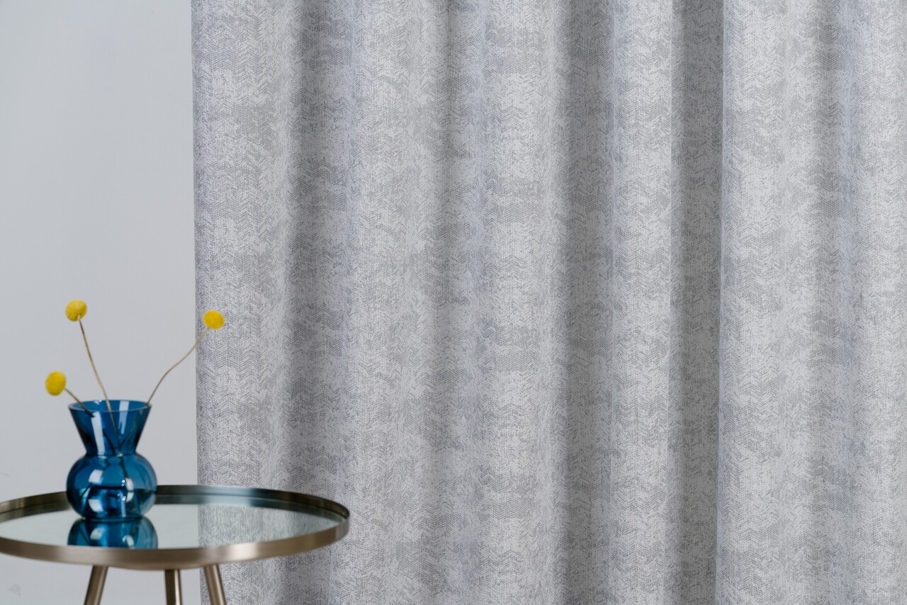 Decorul Gandia are un pattern discret, cu un puternic efect vizual. Nuanta temperata de gri permite draperiei sa fie integrata cu usurinta atat in amenajari minimaliste, cat si in amenajari incarcate cu diferite elemente arhitecturale.