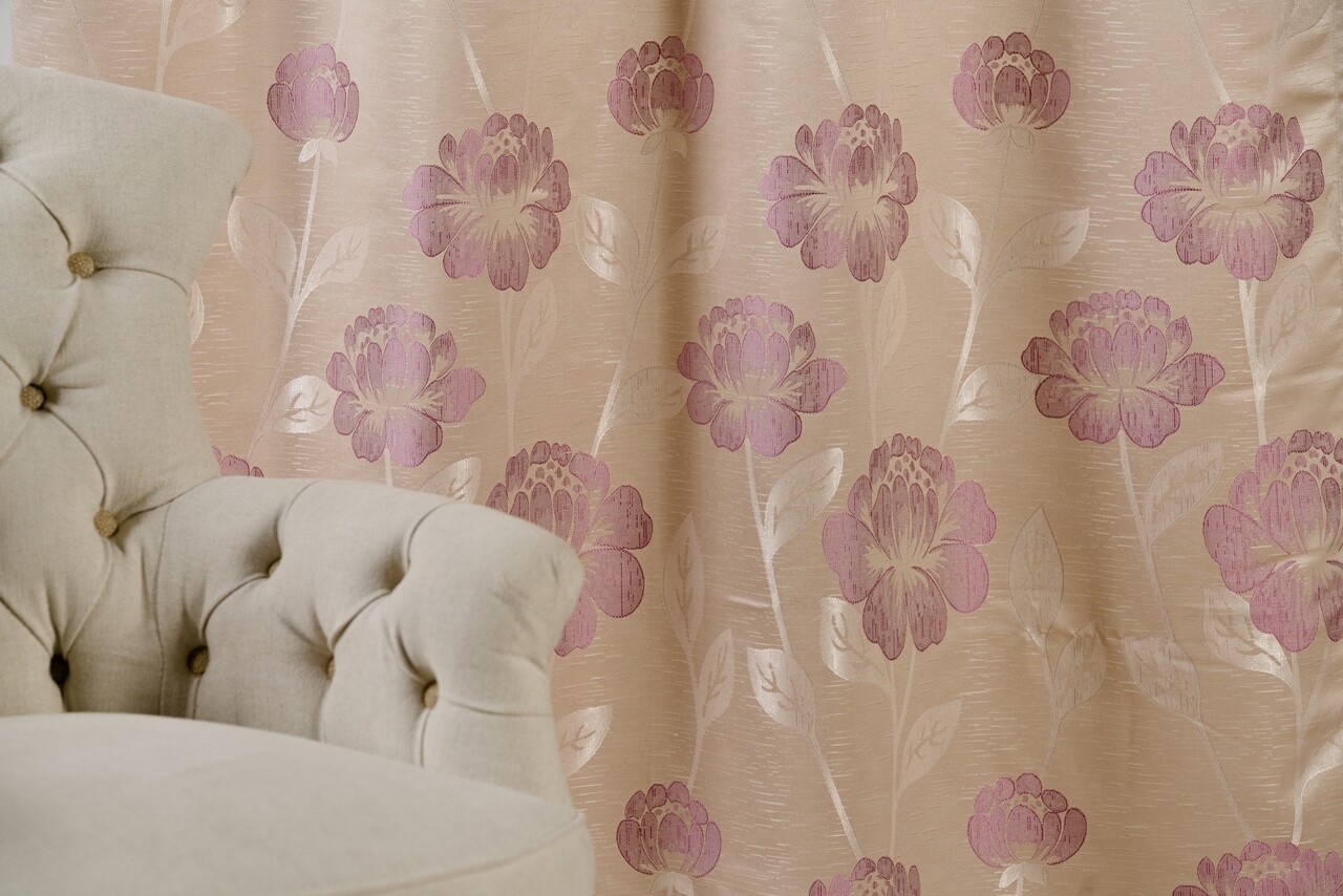 Cu flori stilizate distribuite echilibrat pe toata suprafata tesaturii , draperia Sunrise aduce un plus de culoare amenajarii si este usor de integrat gratie nuantelor pastelate.