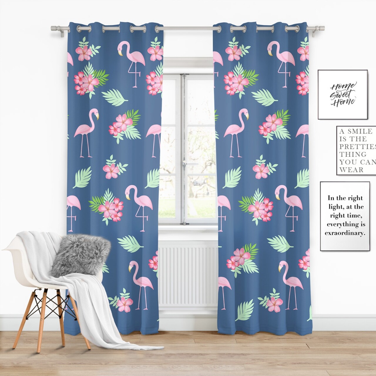 Draperie Zaslona Flamingo, Fashion Goods, 140x250, poliester, albastru/roz