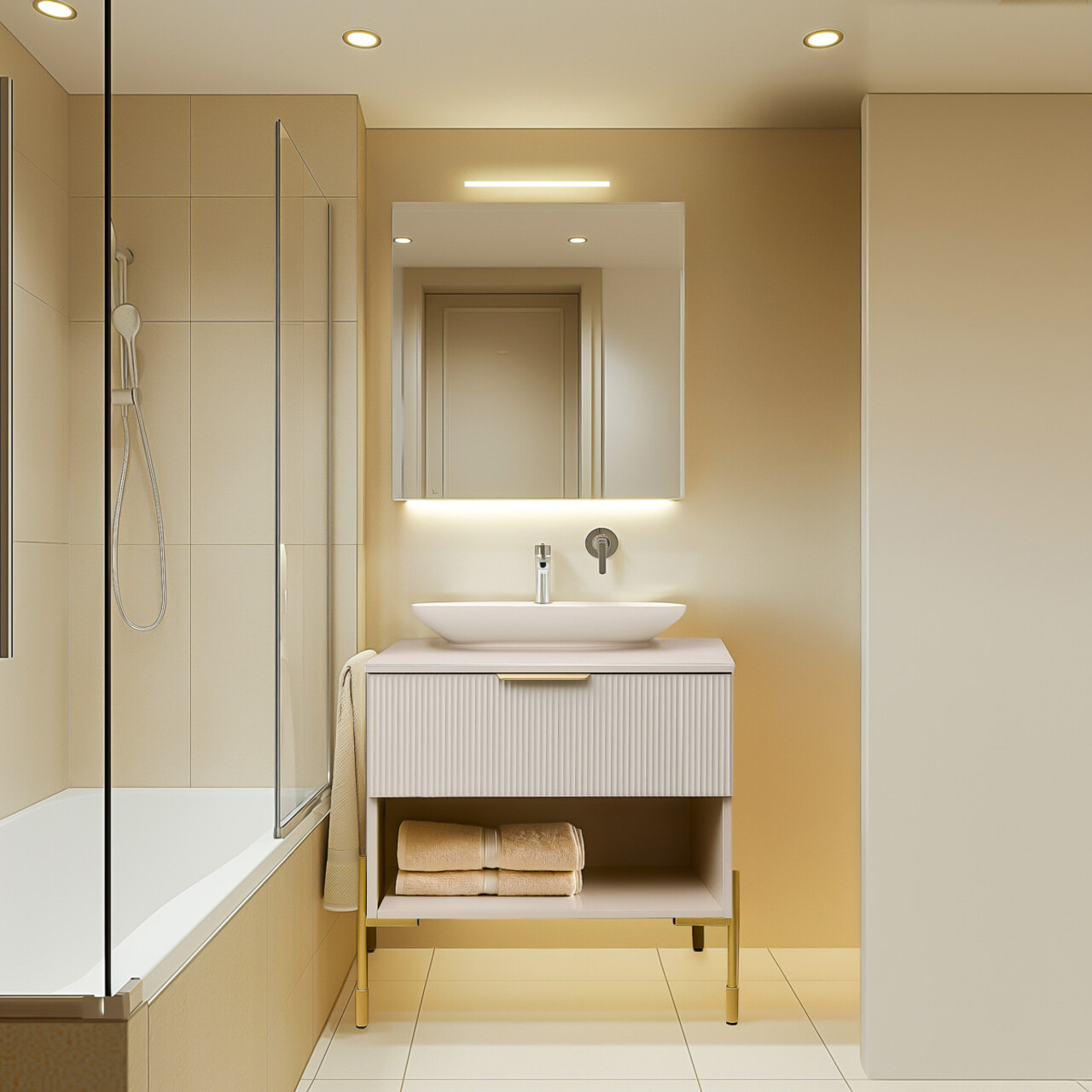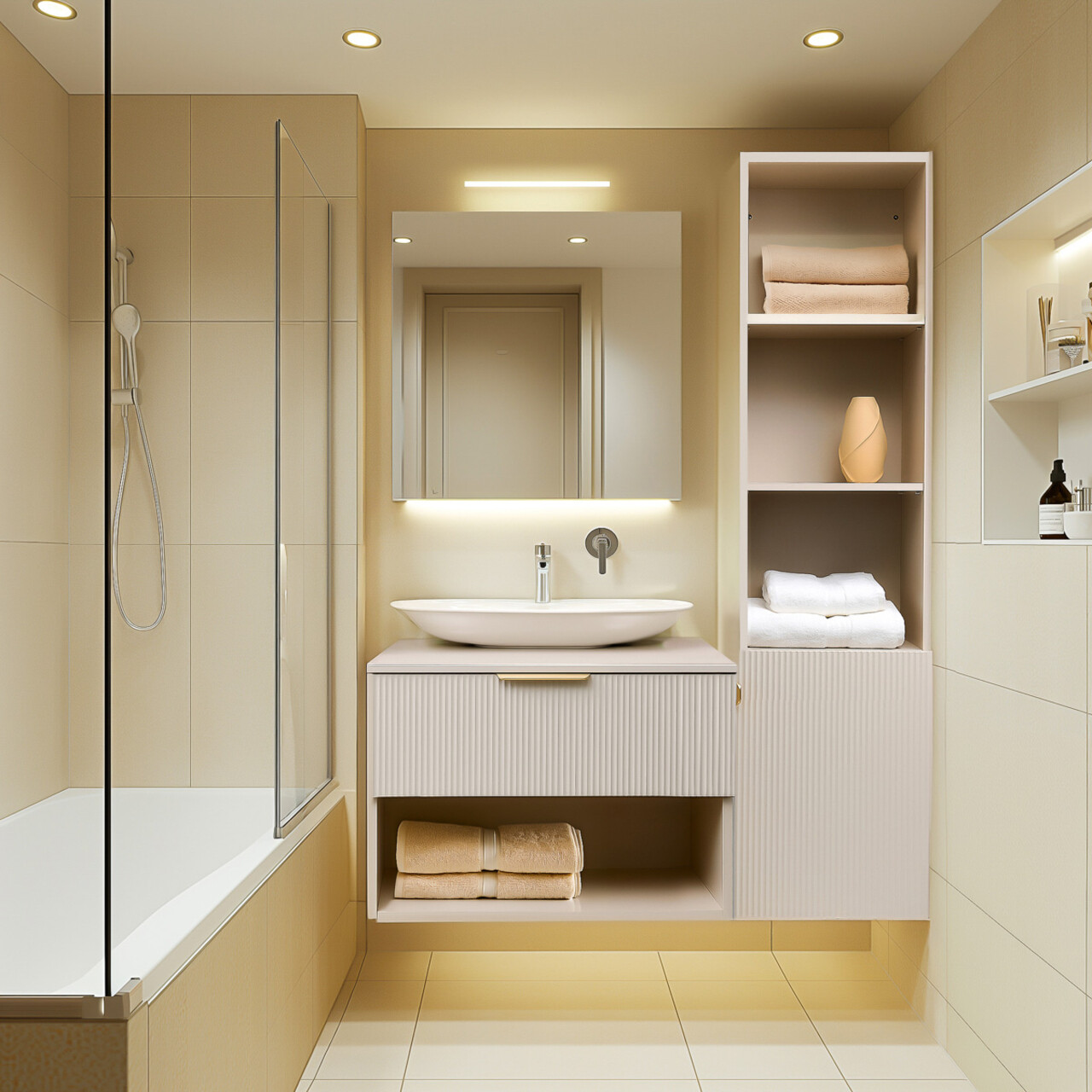 Dulapul NAVADO este construit din materiale de inalta calitate pentru a asigura durabilitate si stabilitate pe termen lung. Corpul este realizat din PAL laminat de 16 mm grosime, oferind rezistenta si o structura solida. Frontul sertarului este realizat din placa MDF foliata de 18 mm grosime, conferind un aspect elegant si rafinat, dar si o rezistenta sporita. Aceste materiale premium asigura atat functionalitate, cat si un design modern pentru baia dumneavoastra.