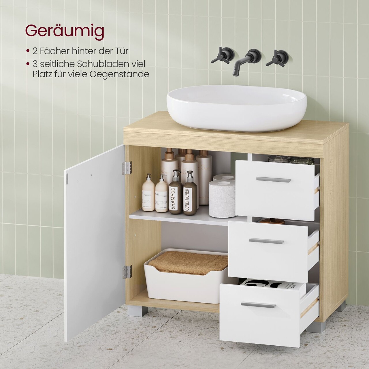 Dulap baie / masca chiuveta, Vasagle, 70x30x64 cm, MDF, max 90 kg, alb/natural