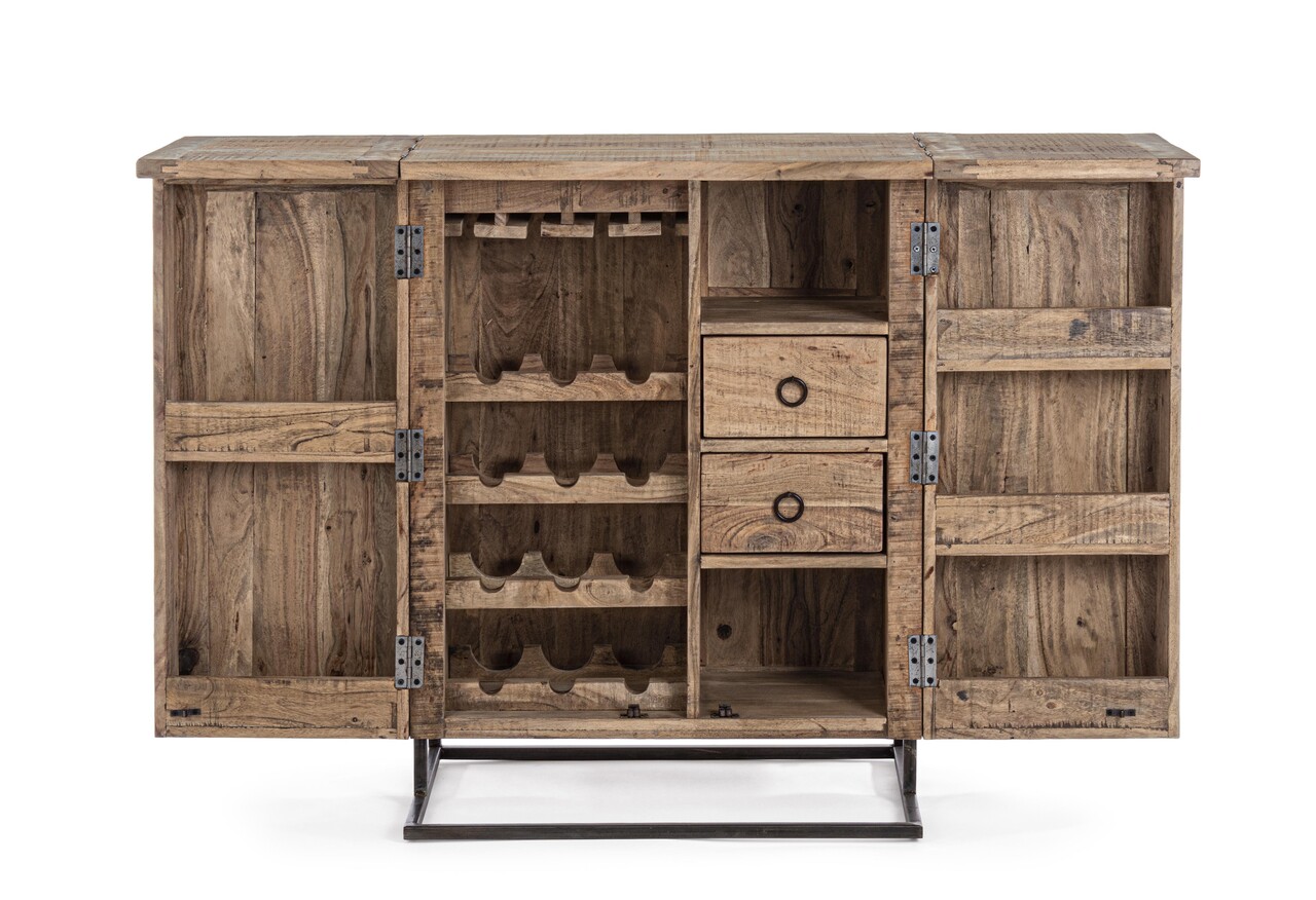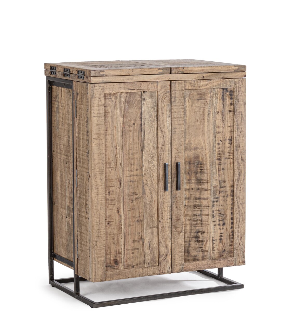 Dulap bar living / bufet Elmer, Bizzotto, 80x48x99 cm, otel/lemn de salcam