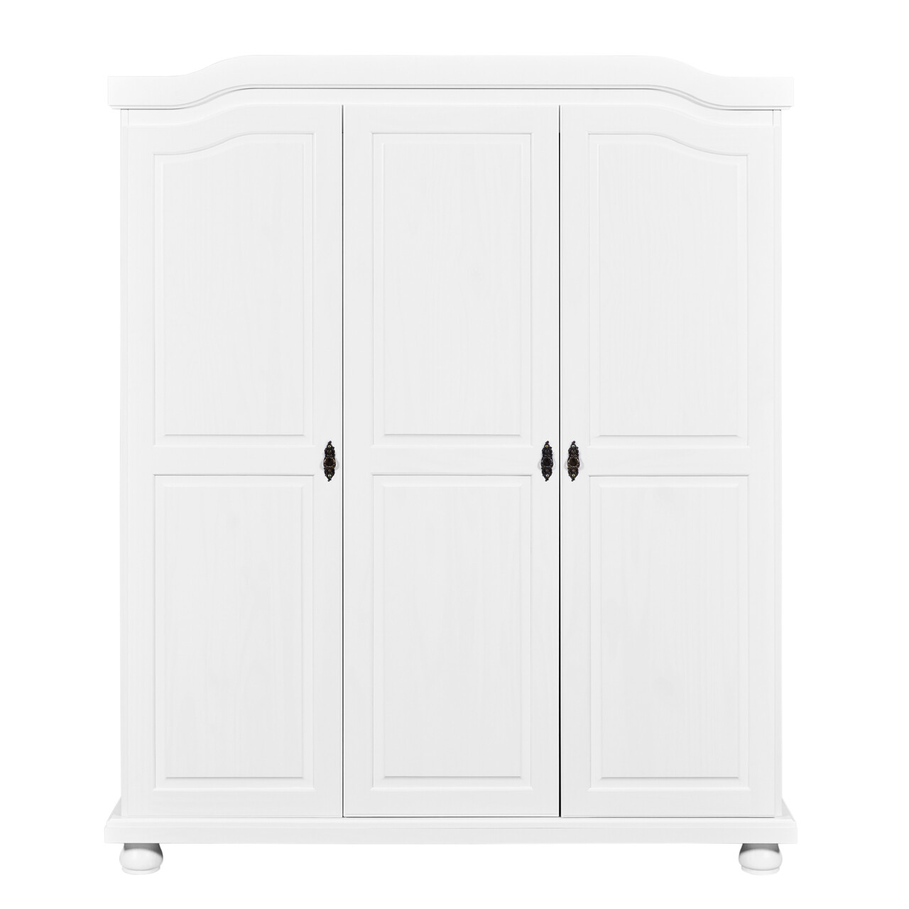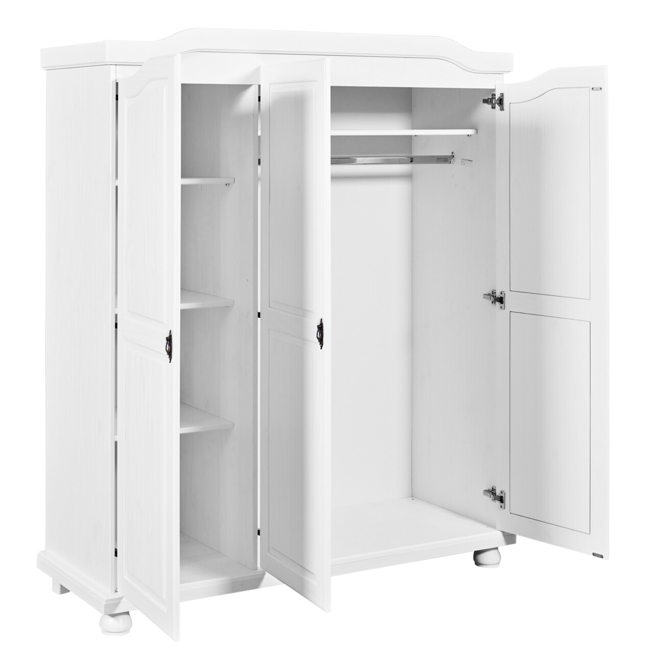 Pentru toti fanii stilului rustic alb, dulapul Bastian alb este alegerea perfecta. Acest dulap emana o atmosfera confortabila si familiara si se potriveste perfect in orice dormitor sau living. Bastian atrage cu adevarat atentia si ofera un spatiu amplu de depozitare pentru hainele dumneavoastra. Finisajul alb, lacuit, transparent, al dulapului cu 3 usi permite evidentierea fibrei naturale a lemnului masiv. Cu 5 rafturi si un sina de haine, ofera mult spatiu pentru hainele dumneavoastra preferate! Aceasta piesa de mobilier din lemn masiv nu numai ca se mandreste cu o calitate inalta, promitand o durata lunga de viata, dar este si fabricata din materiale ecologice. Manerele negre sunt fabricate din metal.
