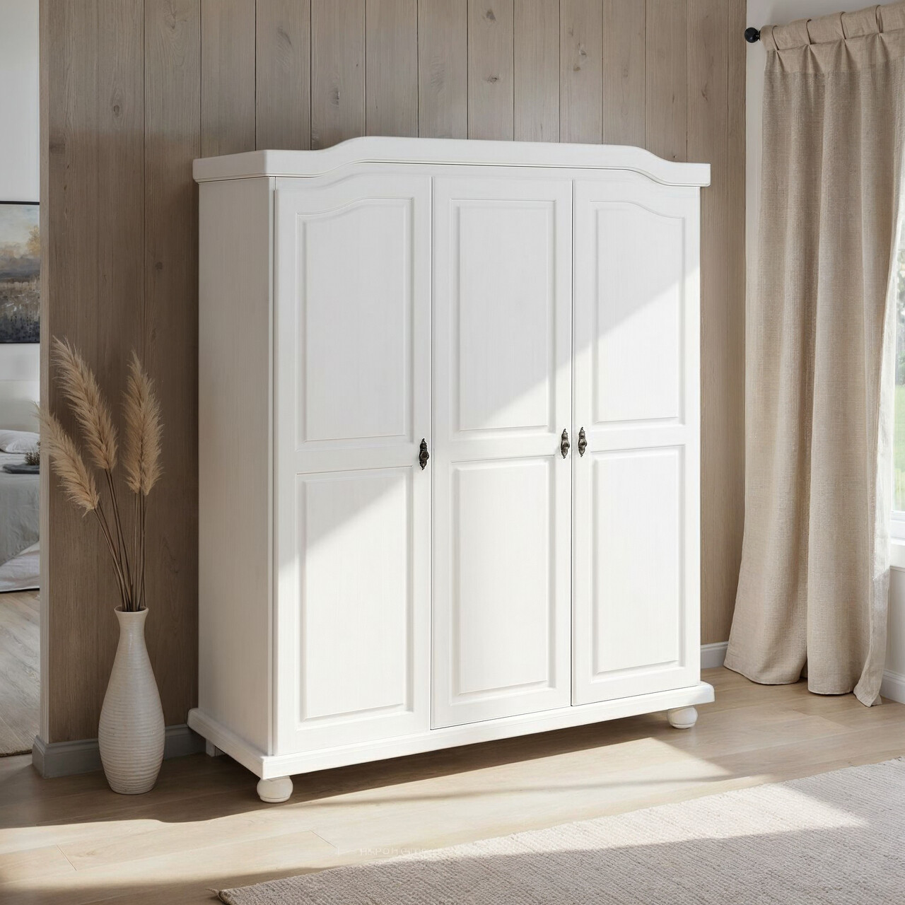 Dulap din lemn masiv cu 3 usi, alb lacuit. Prevazut cu bara pentru haine.