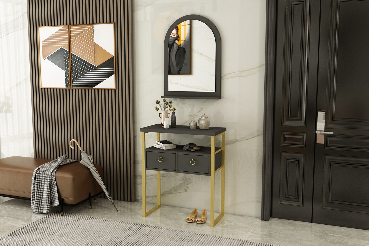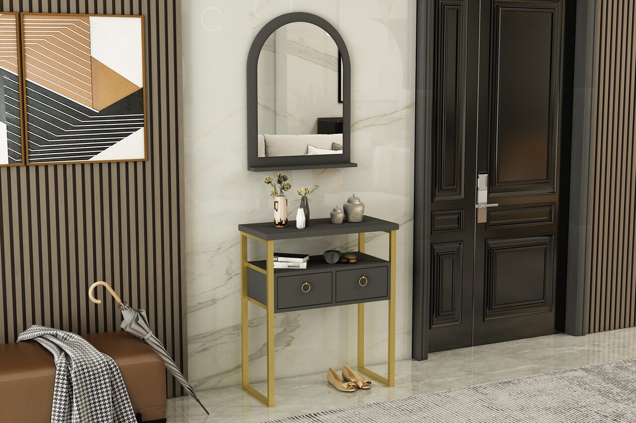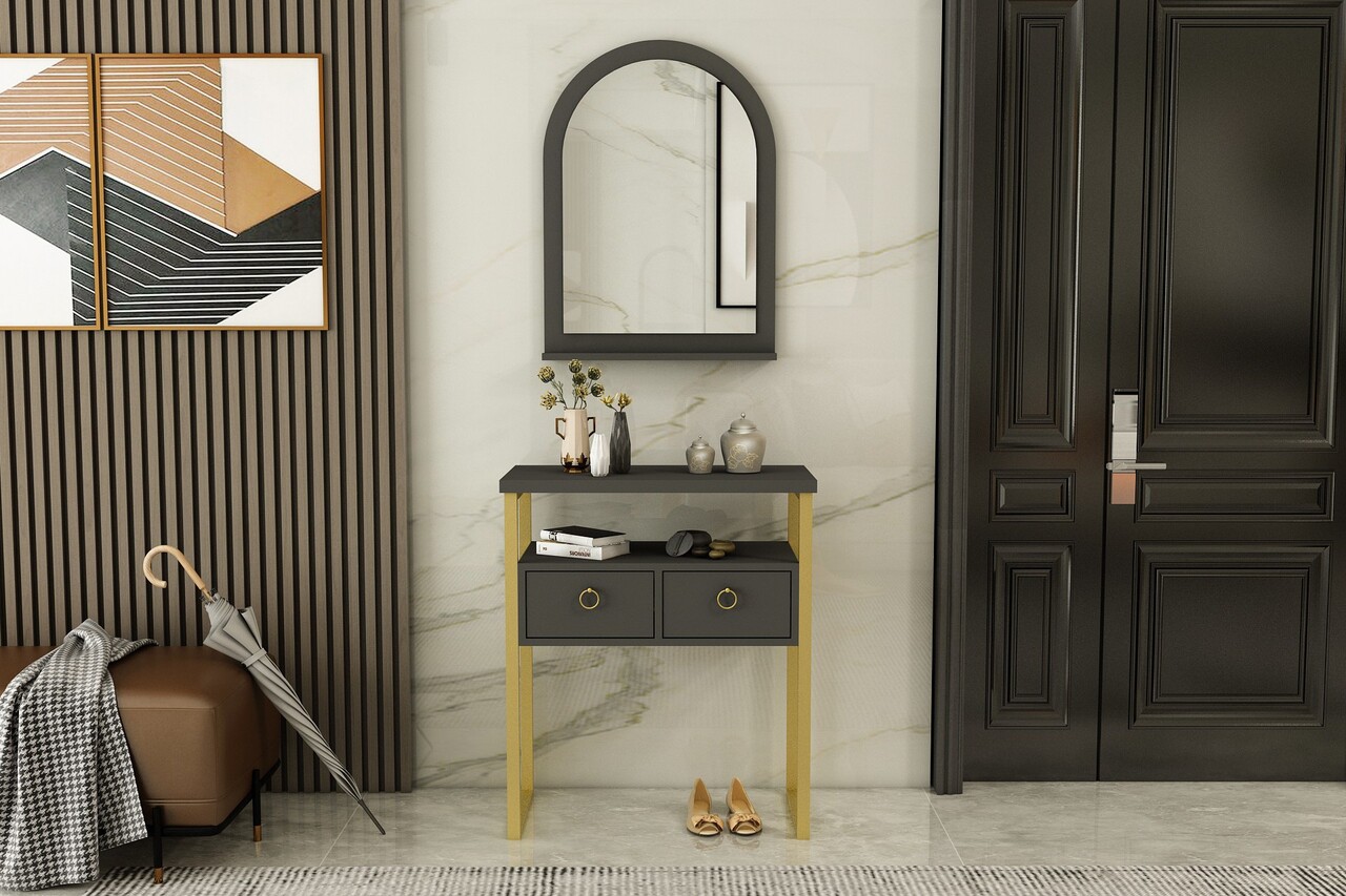 Dulap, Coraline, Mipa Mirrored, 75x88x36 cm, PAL, Antracit / Aur