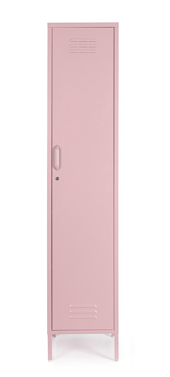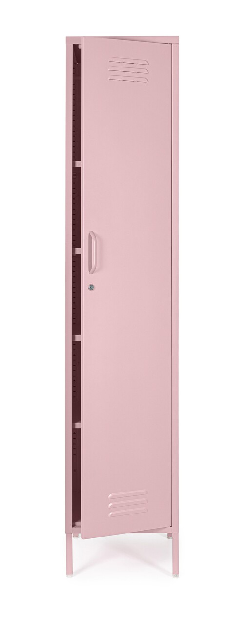 Dulap cu 1 usa Cambridge, Bizzotto, 4 rafturi reglabile, 46x38x185 cm, otel, roz pastel