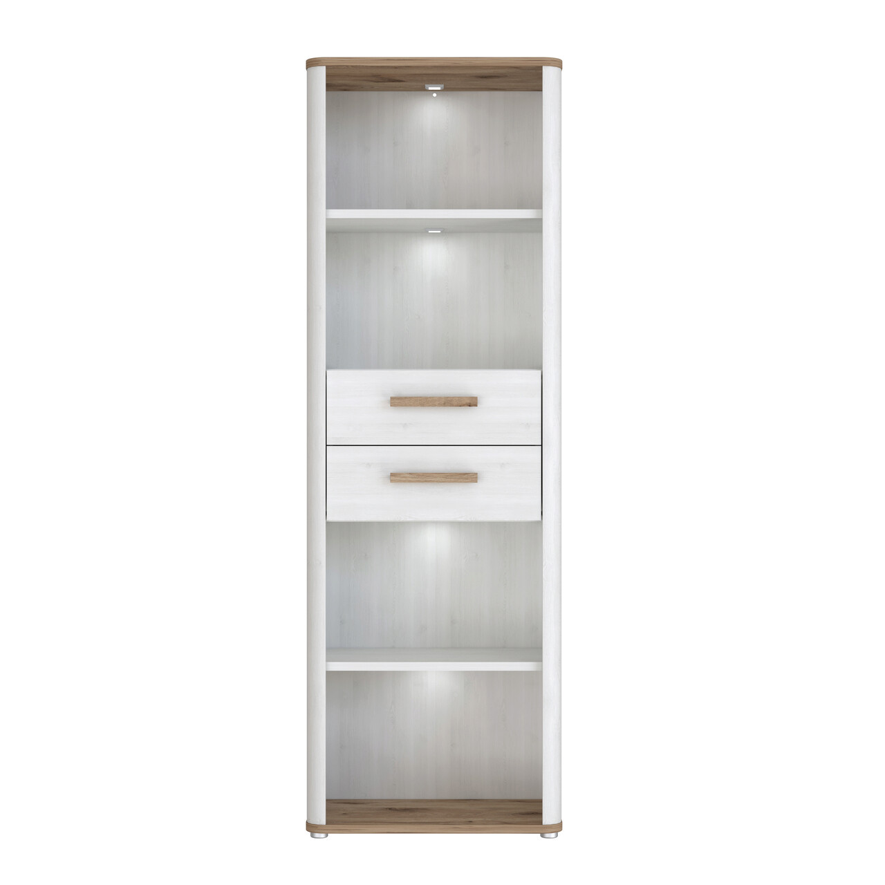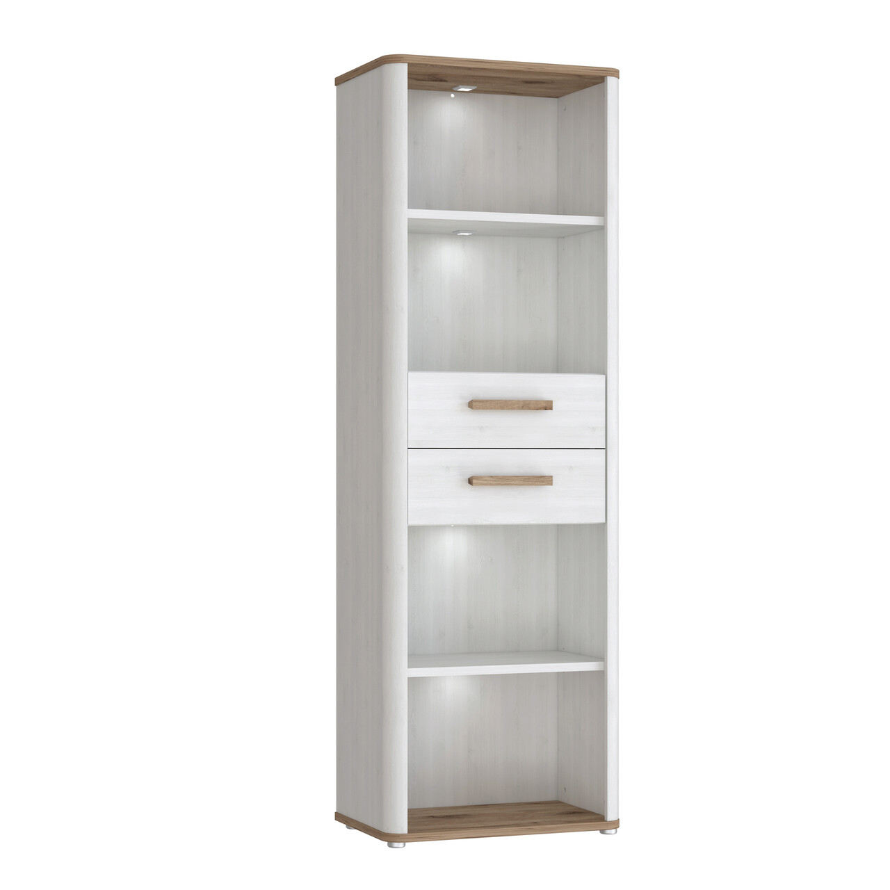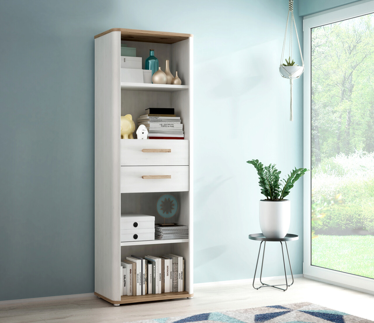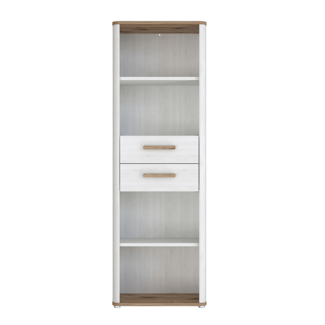 Dulap cu 2 sertare Oude, Bedora, 65.5x41.3x198.3 cm, PAL/MDF/lemn, alb/stejar