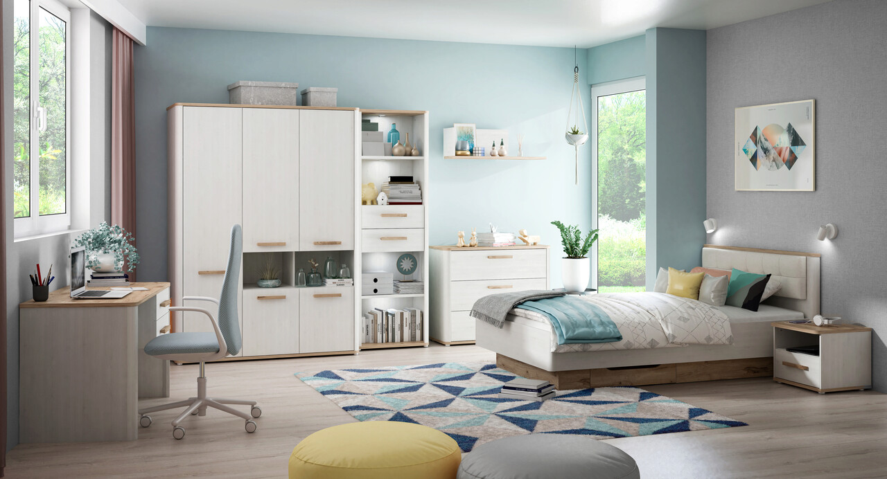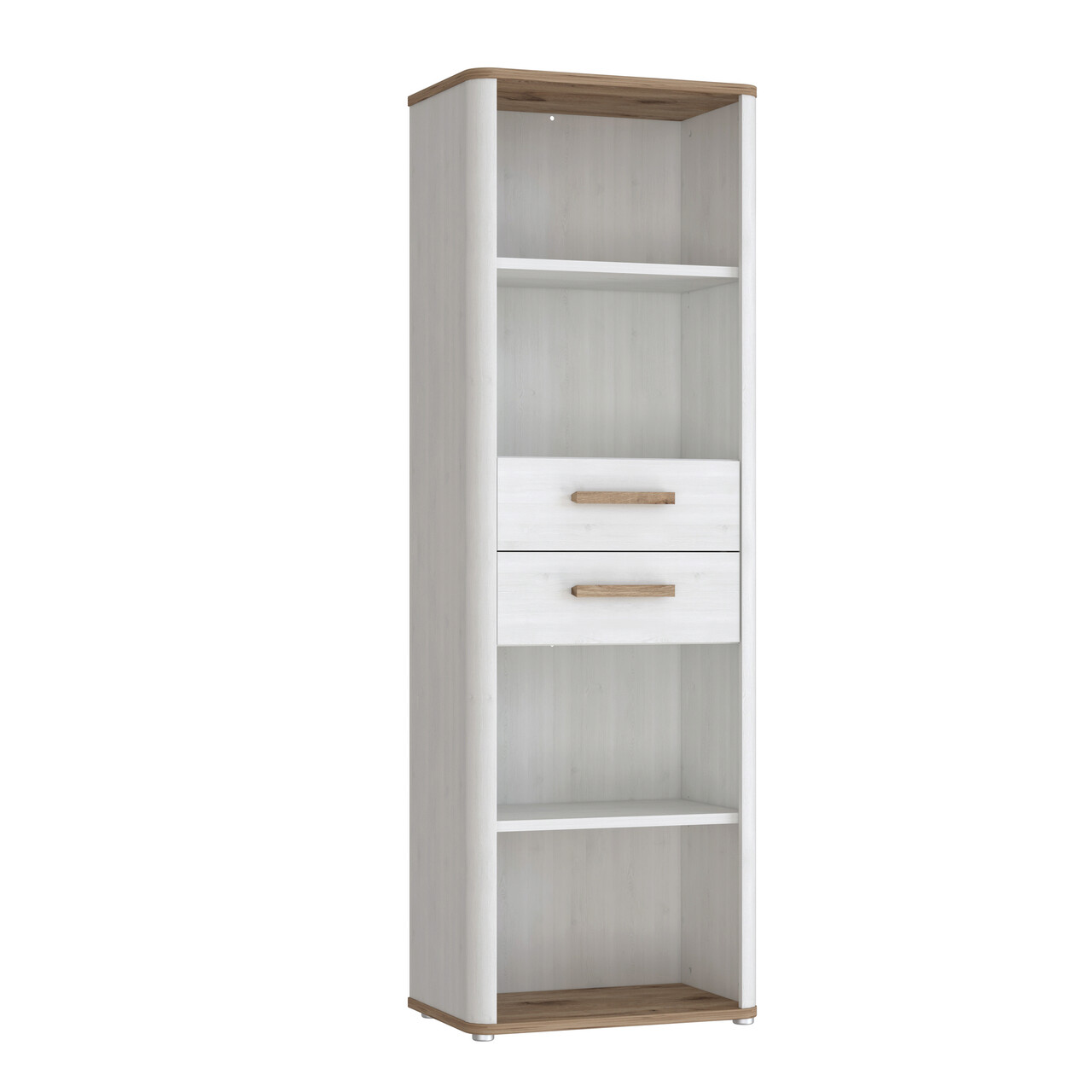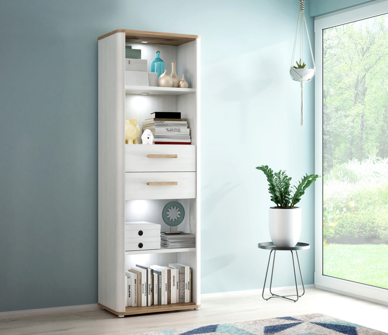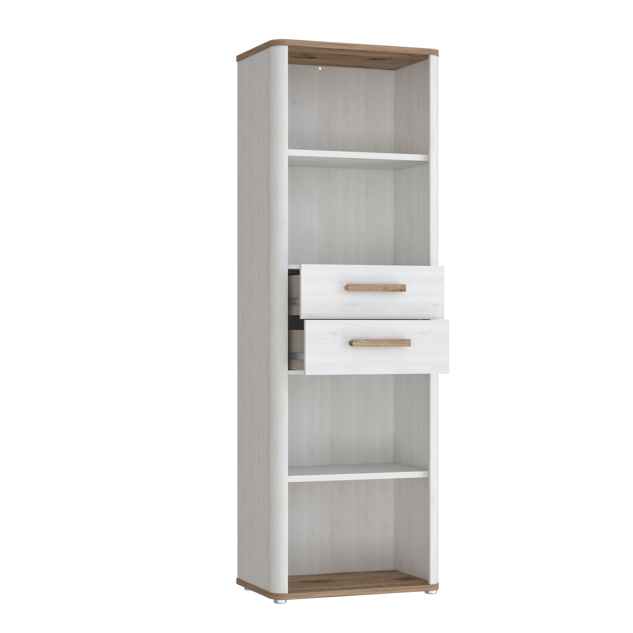 Dulap cu 2 sertare Oude, Bedora, 65.5x41.3x198.3 cm, PAL/MDF/lemn, alb/stejar