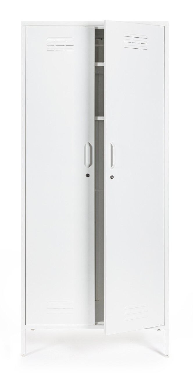 Dulap cu 2 usi Cambridge, Bizzotto, 2 rafturi reglabile, 80 x 50 x 185 cm, otel, alb
