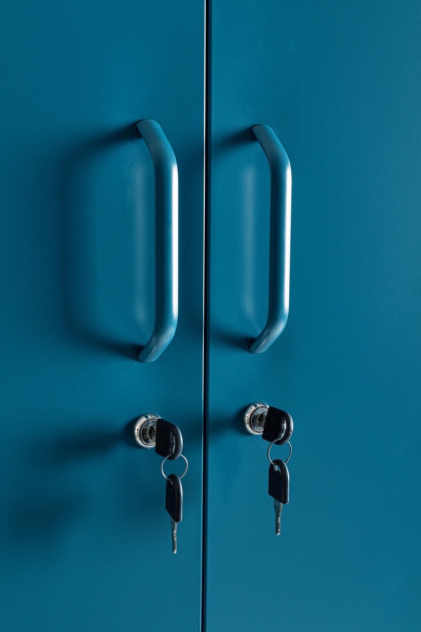 Dulap cu 2 usi Cambridge, Bizzotto, 2 rafturi reglabile, 80 x 50 x 185 cm, otel, albastru