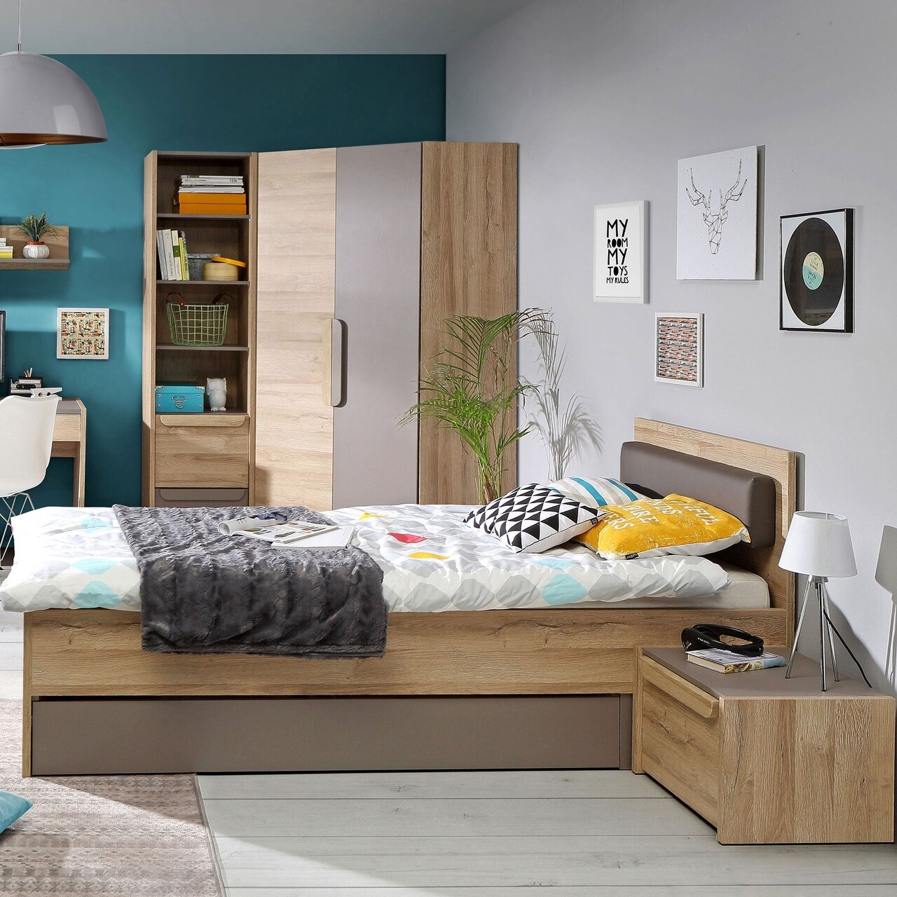 Dulap cu 2 usi de colt, Enrique, L.103 l.103 H.198, pal, stejar/gri