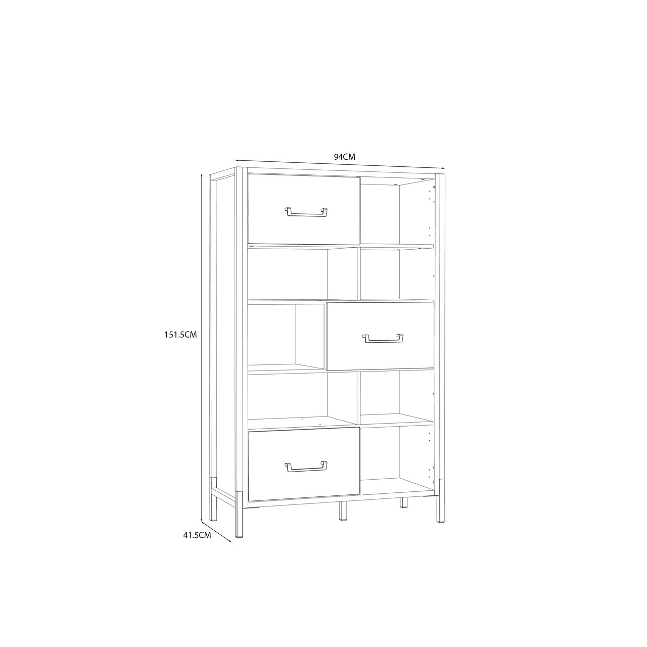 Dulap cu 3 sertare Oss, Bedora, 94x41.5x151.5 cm, PAL/metal, stejar/negru