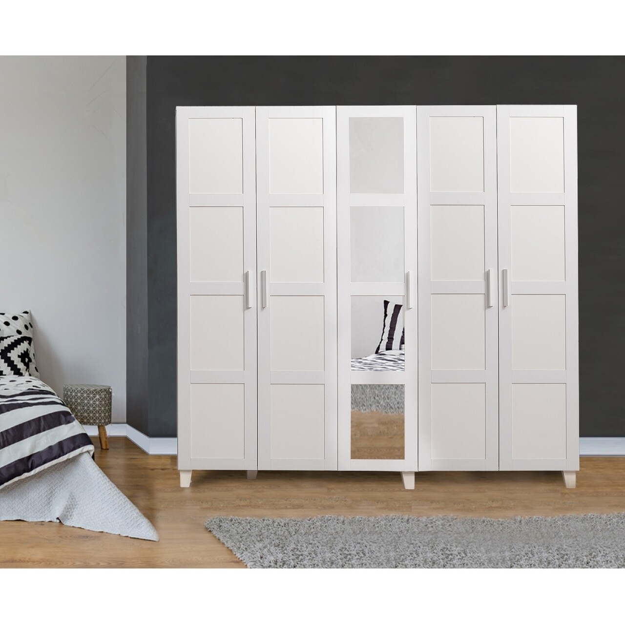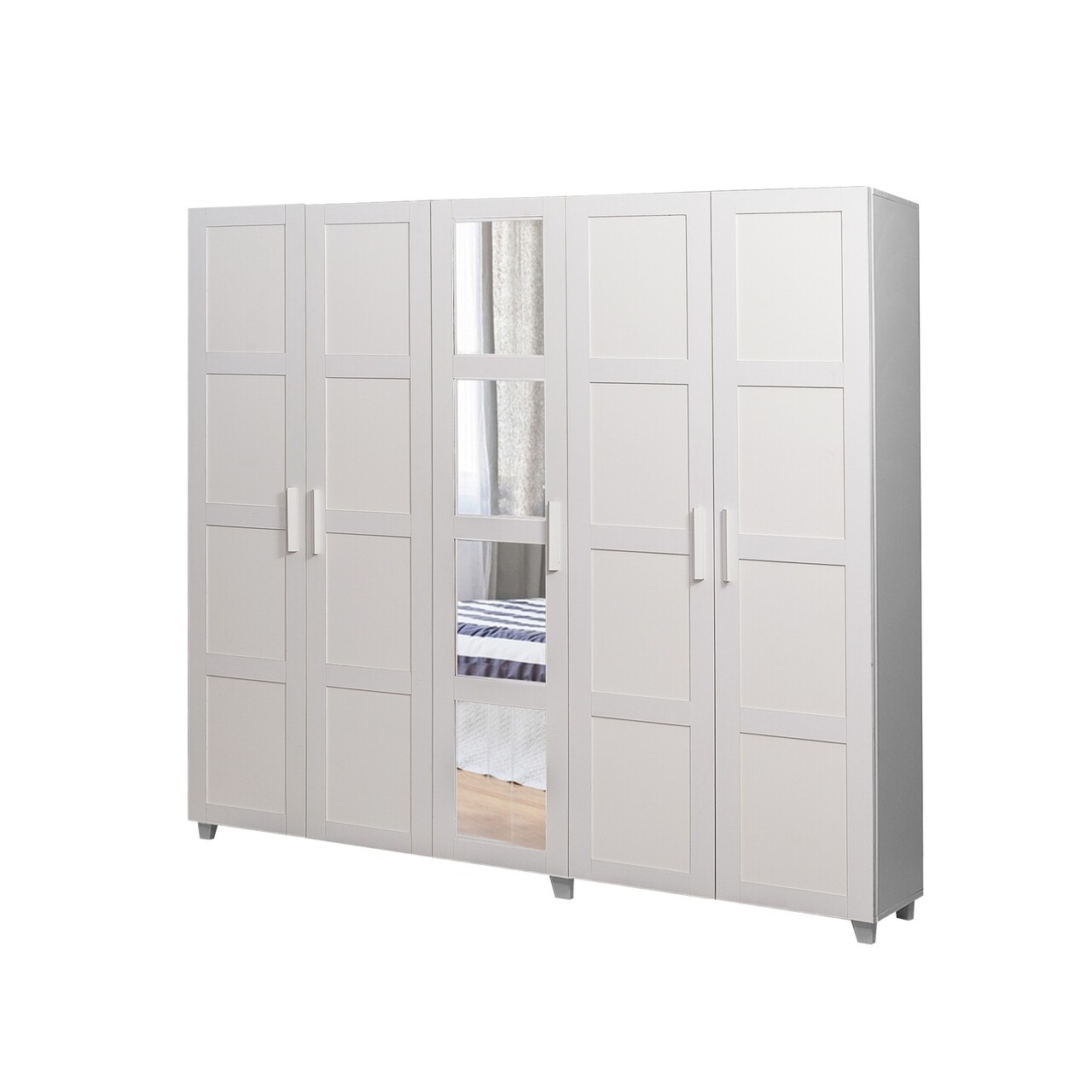 Dulap cu oglinda pentru haine Victoria - White, Vella, 220x50x201 cm