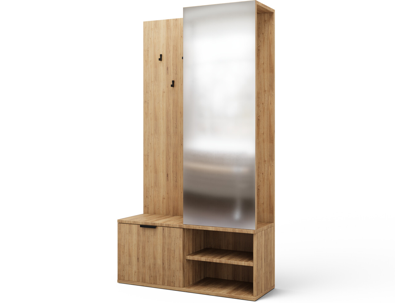 • Dulap cu pantofar, cuier si oglinda ELTAP, Oturra, 100x35x189 cm, PAL, stejar