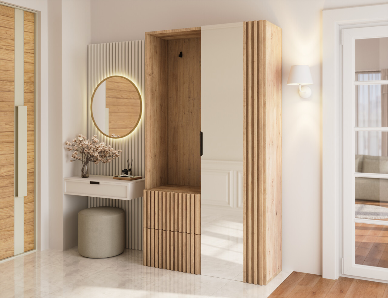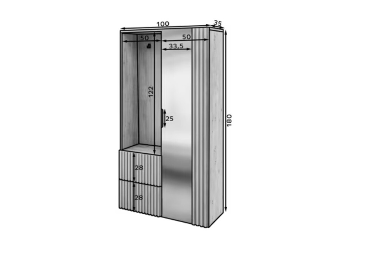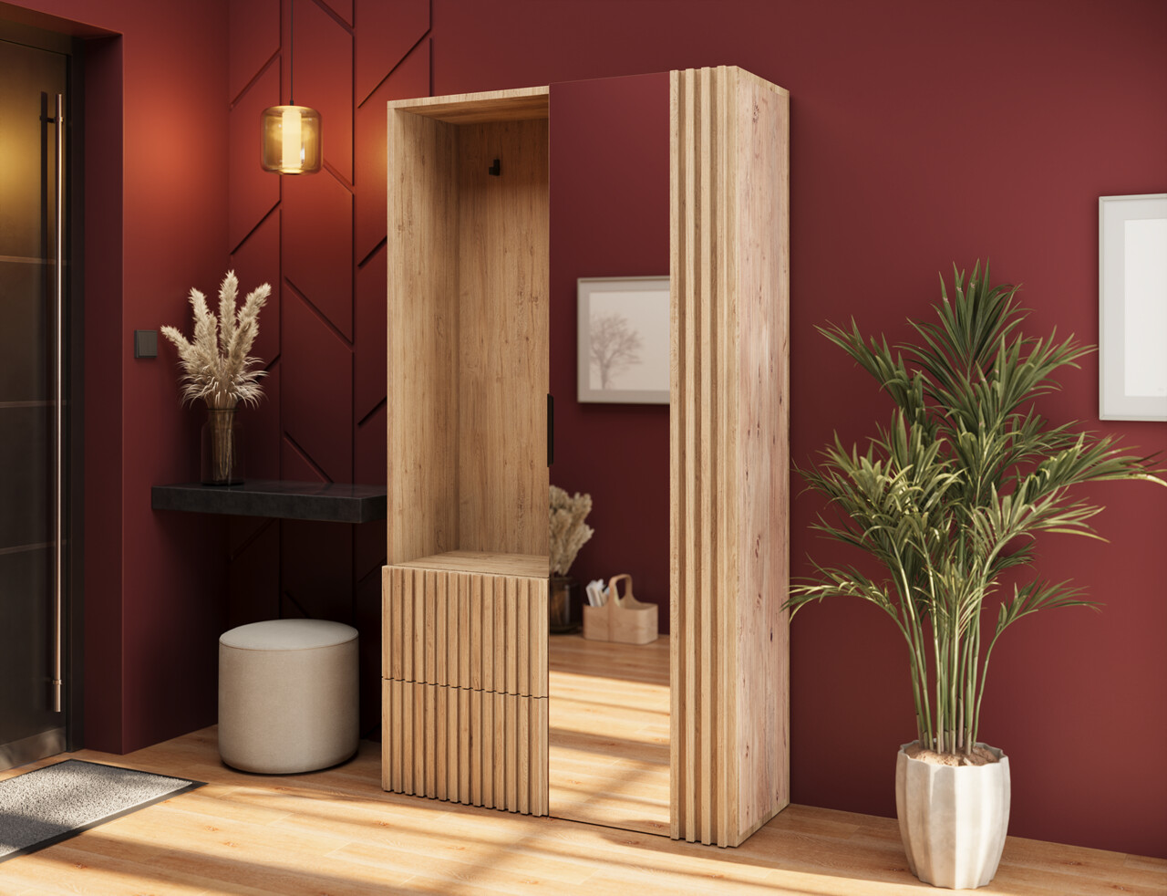 Dulap cu pantofar, cuier si oglinda ELTAP, Vimeiro, 100x35x180 cm, PAL, stejar