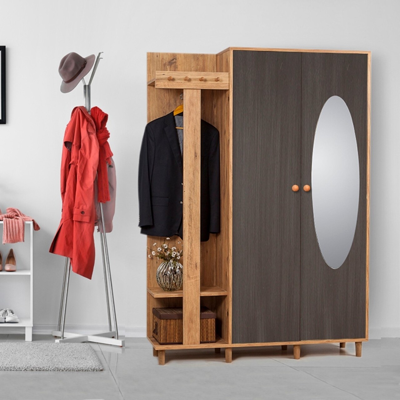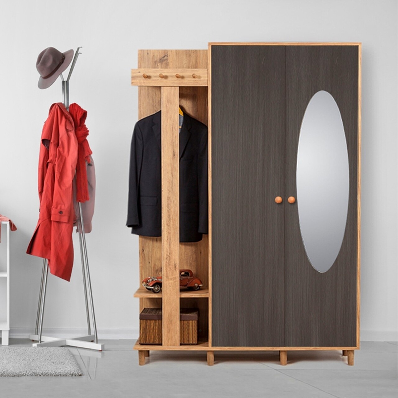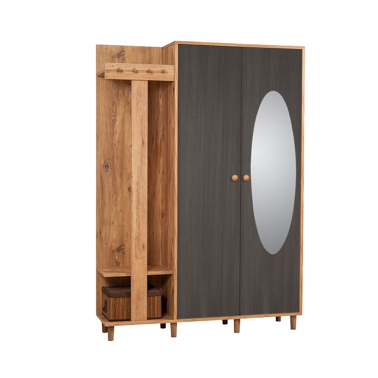 Dulap cu pantofar, cuier si oglinda Garmanto 135 - Atlantic Anthracite, Vella, 135x36x192 cm