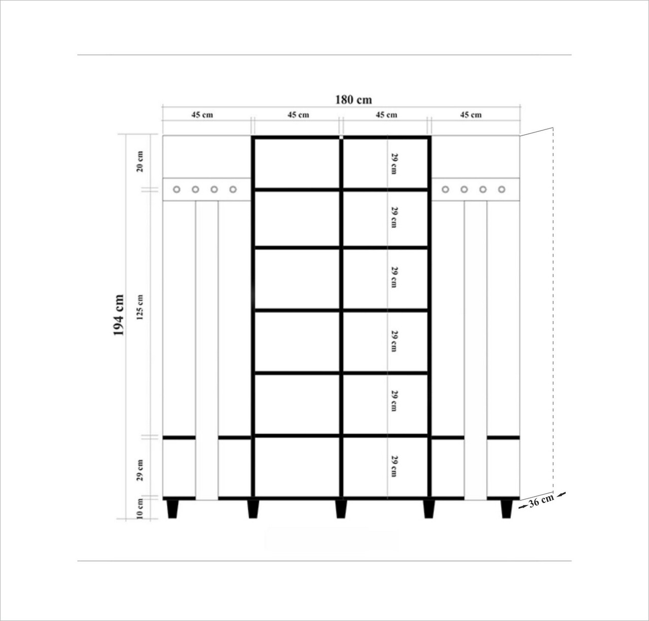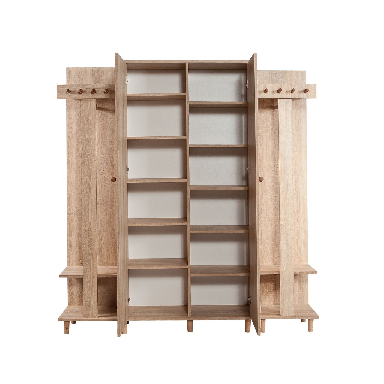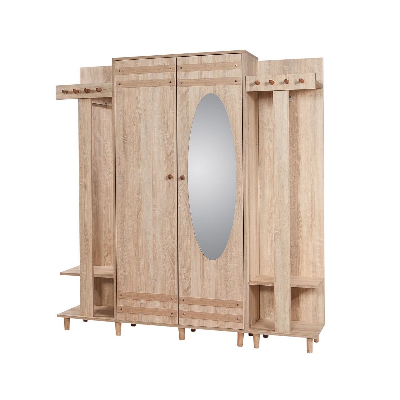 Dulap cu pantofar, cuier si oglinda Garmanto 180-200, Vella, 180x36x194 cm, multicolor