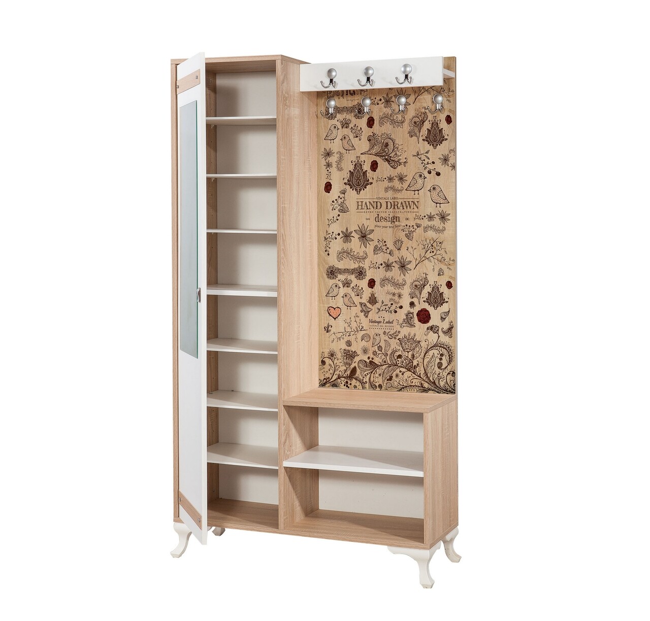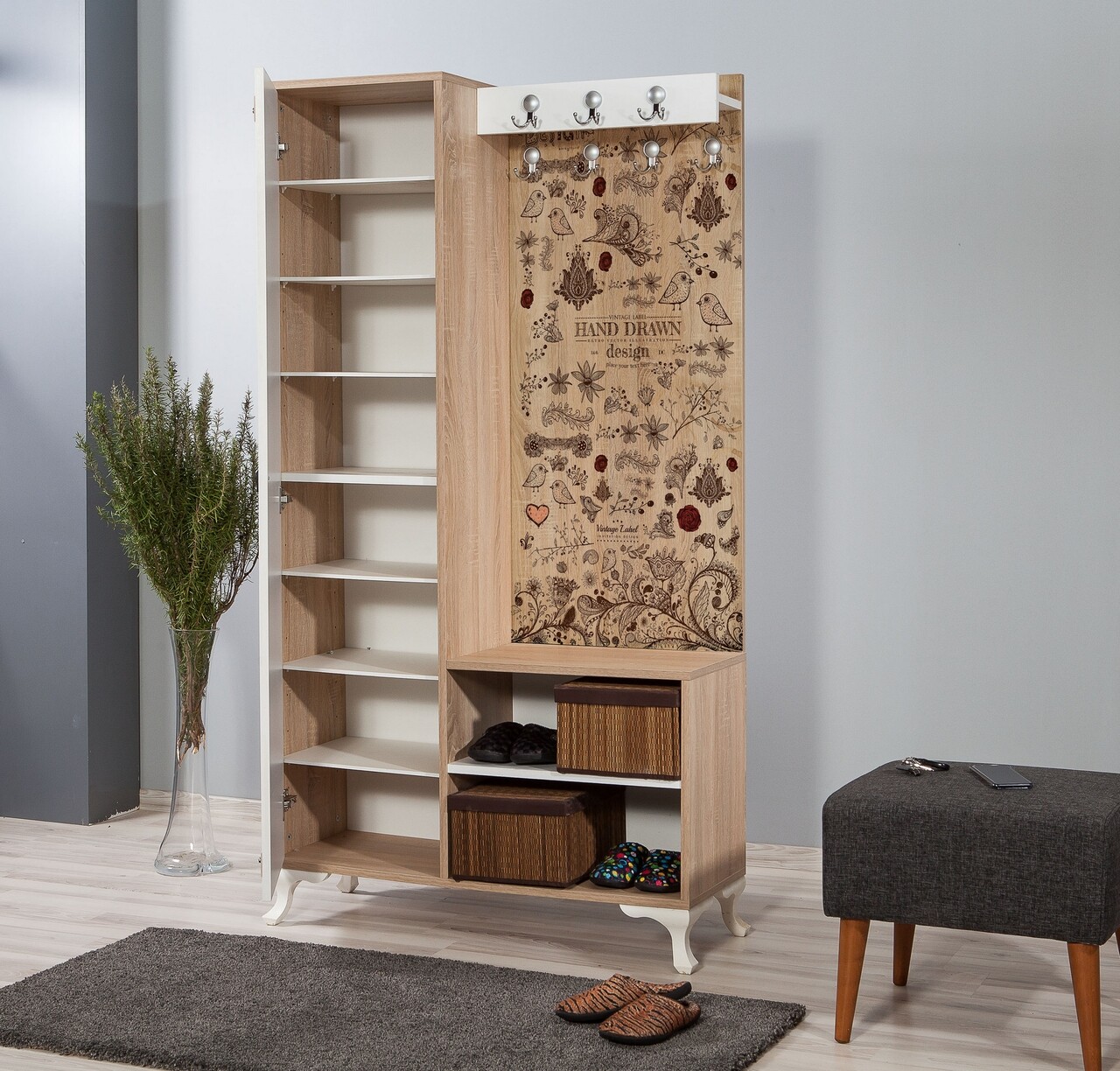 Dulap cu pantofar, cuier si oglinda İNCİ-731, Vella, 100x36x190 cm, multicolor