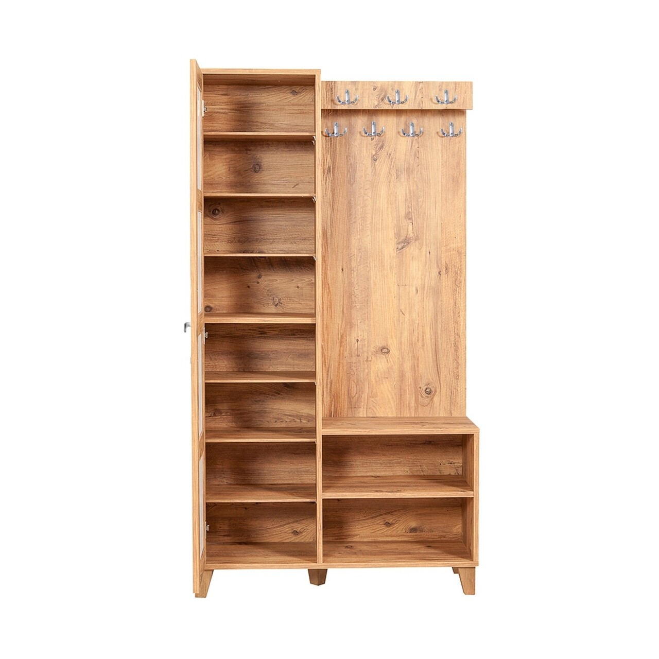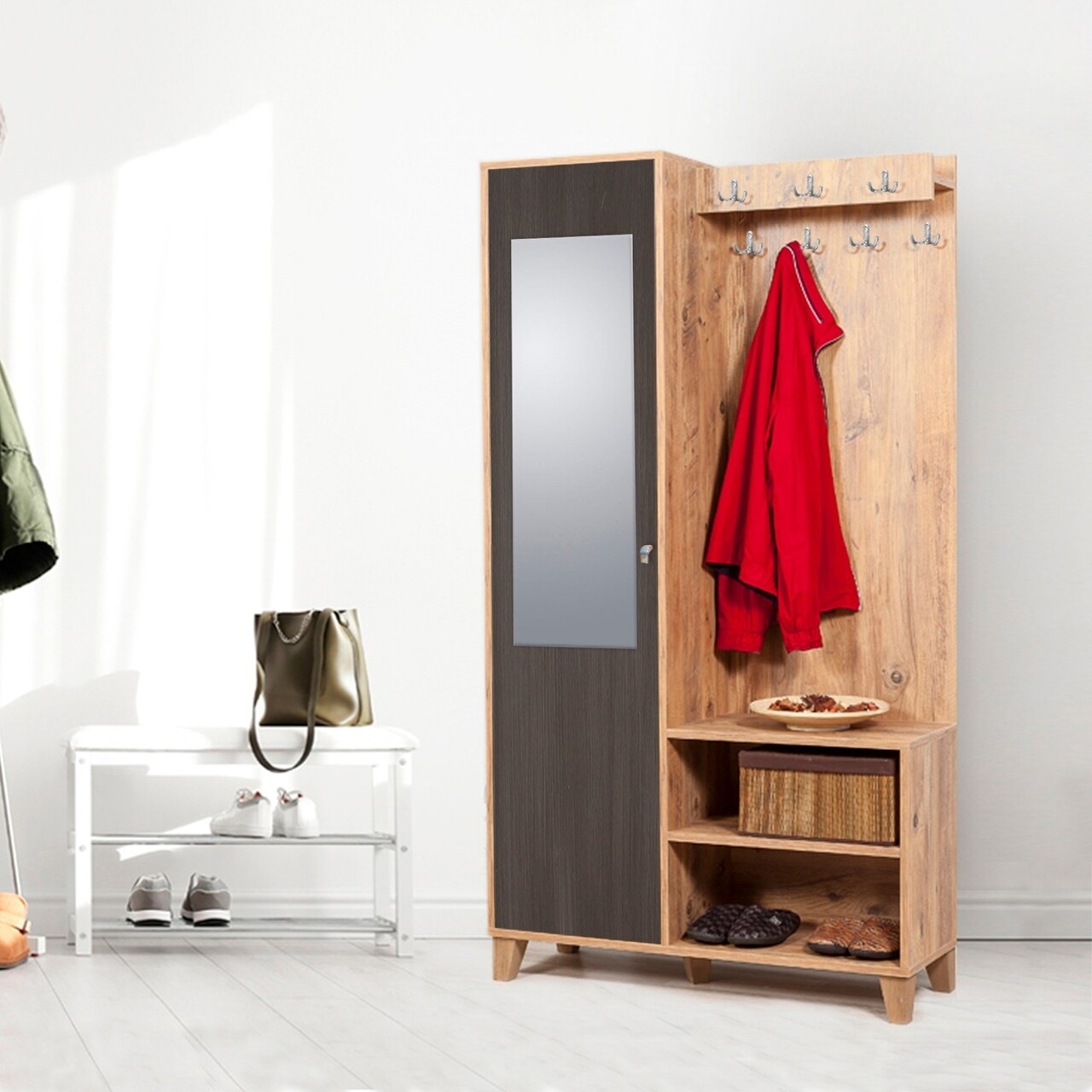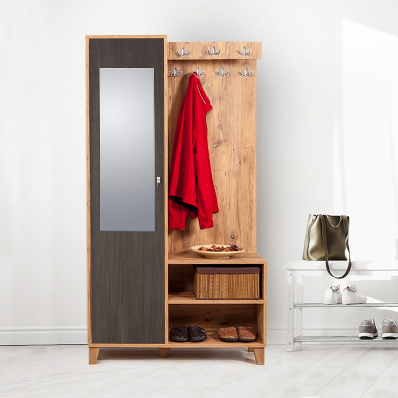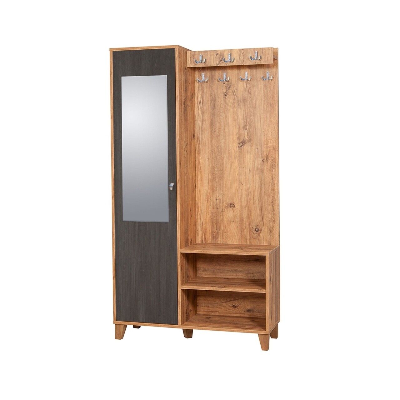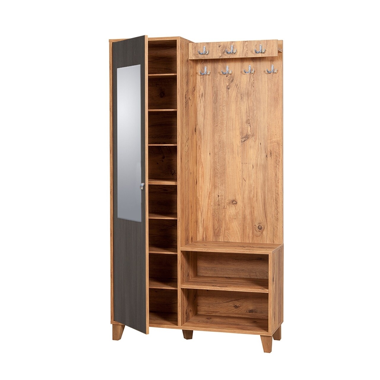 Dulap cu pantofar, cuier si oglinda Inci Atlantic Anthracite, Vella, 100x36x183 cm