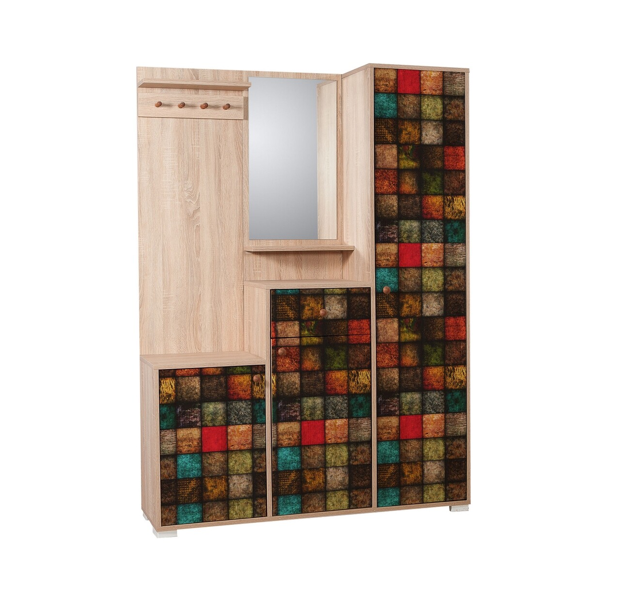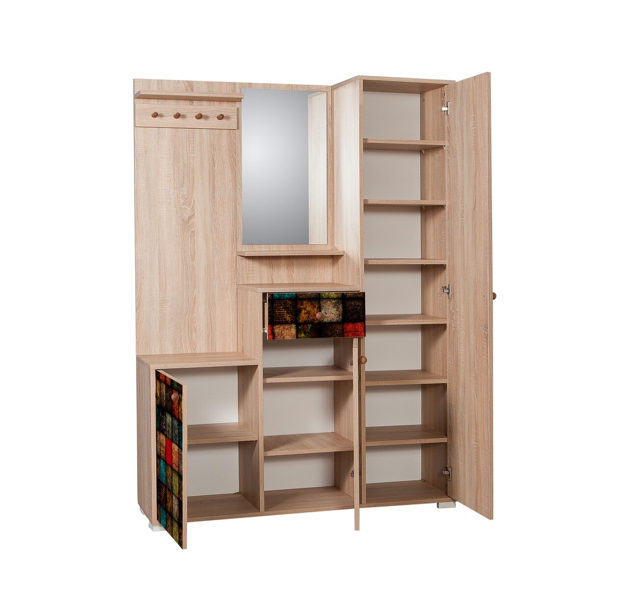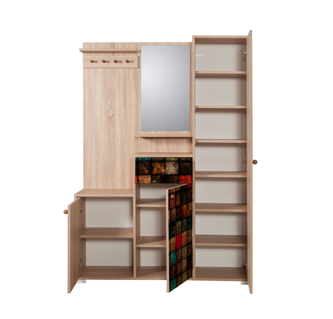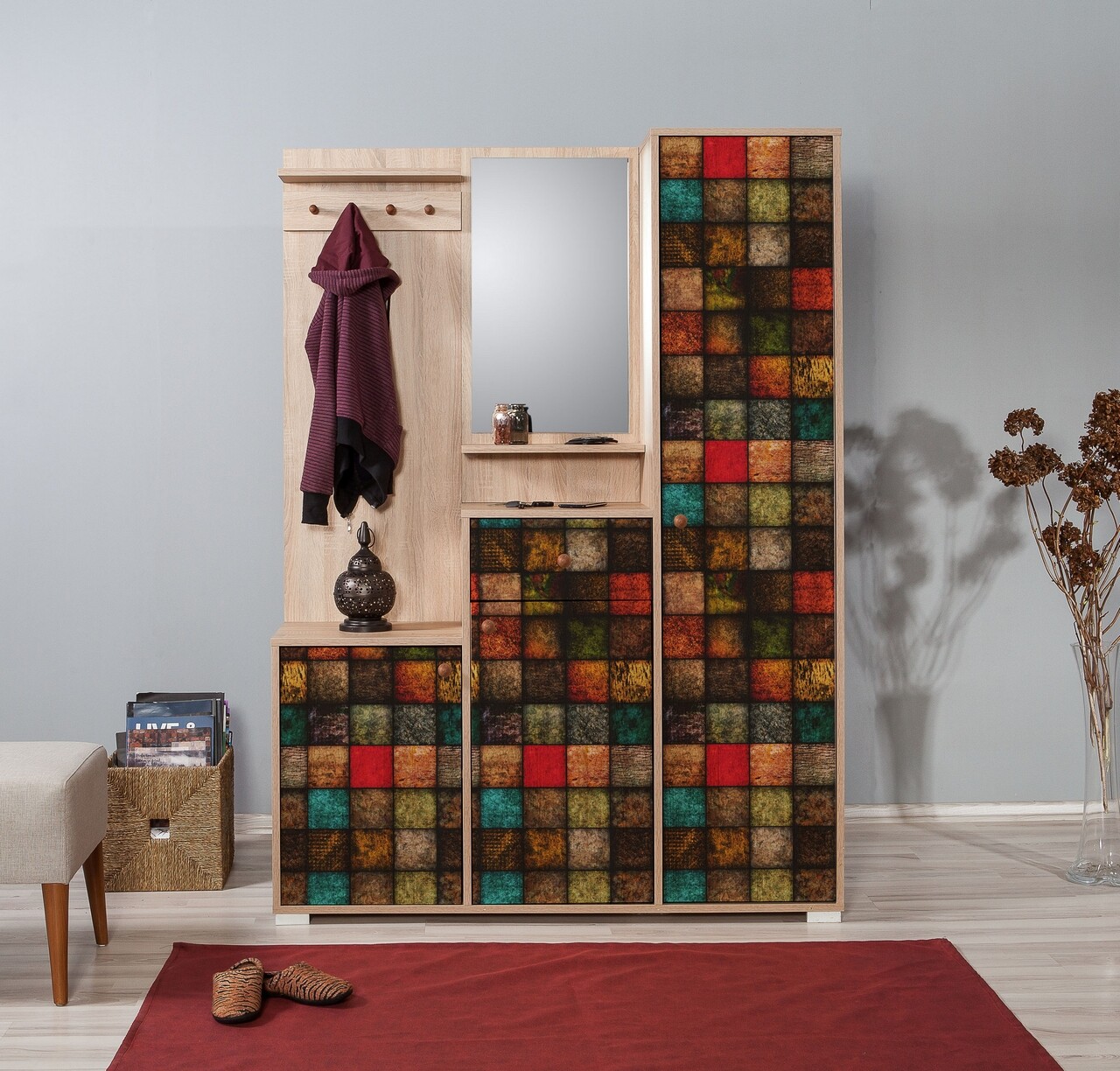Dulap cu pantofar, cuier si oglinda Kardelen 723, Vella, 135x36x188 cm, multicolor