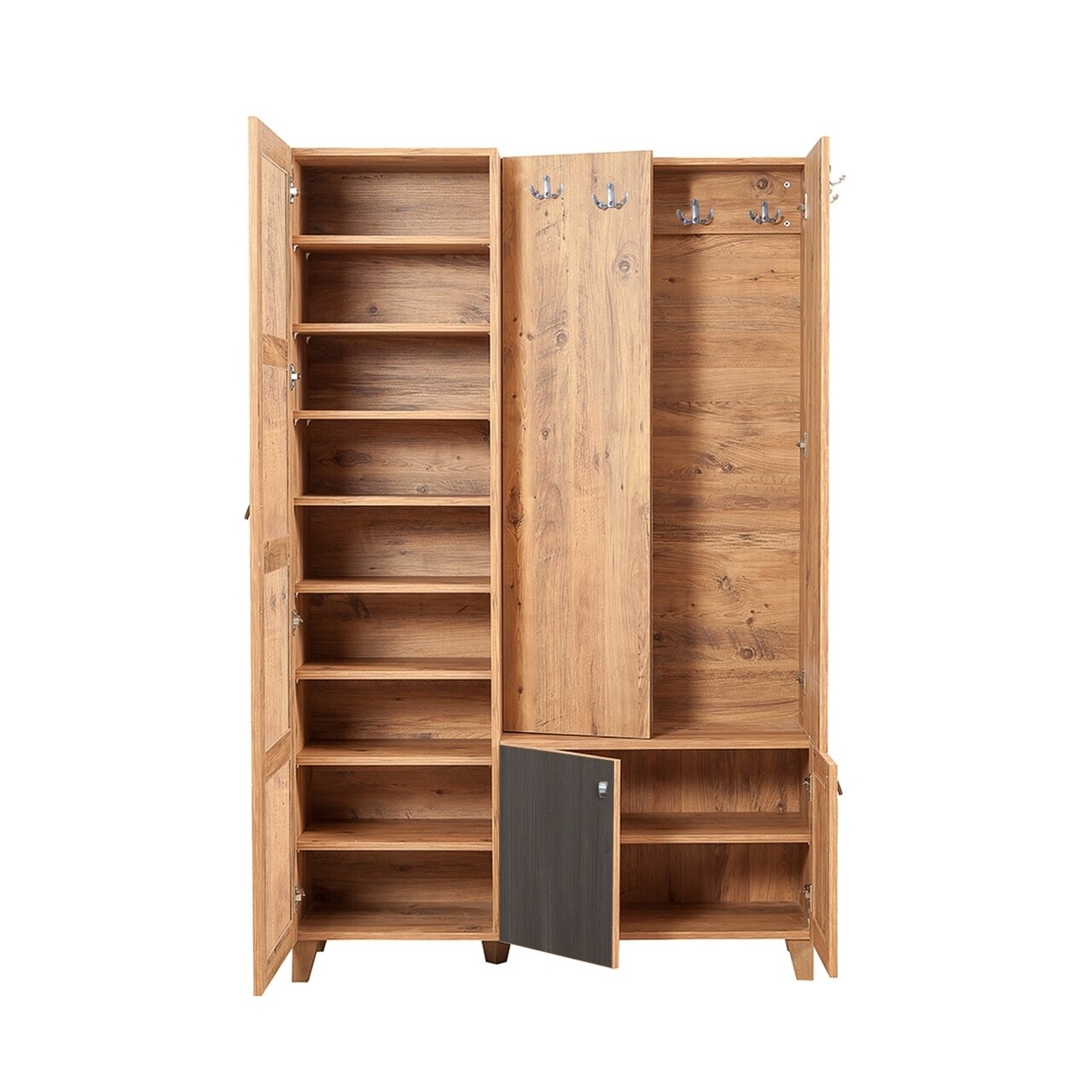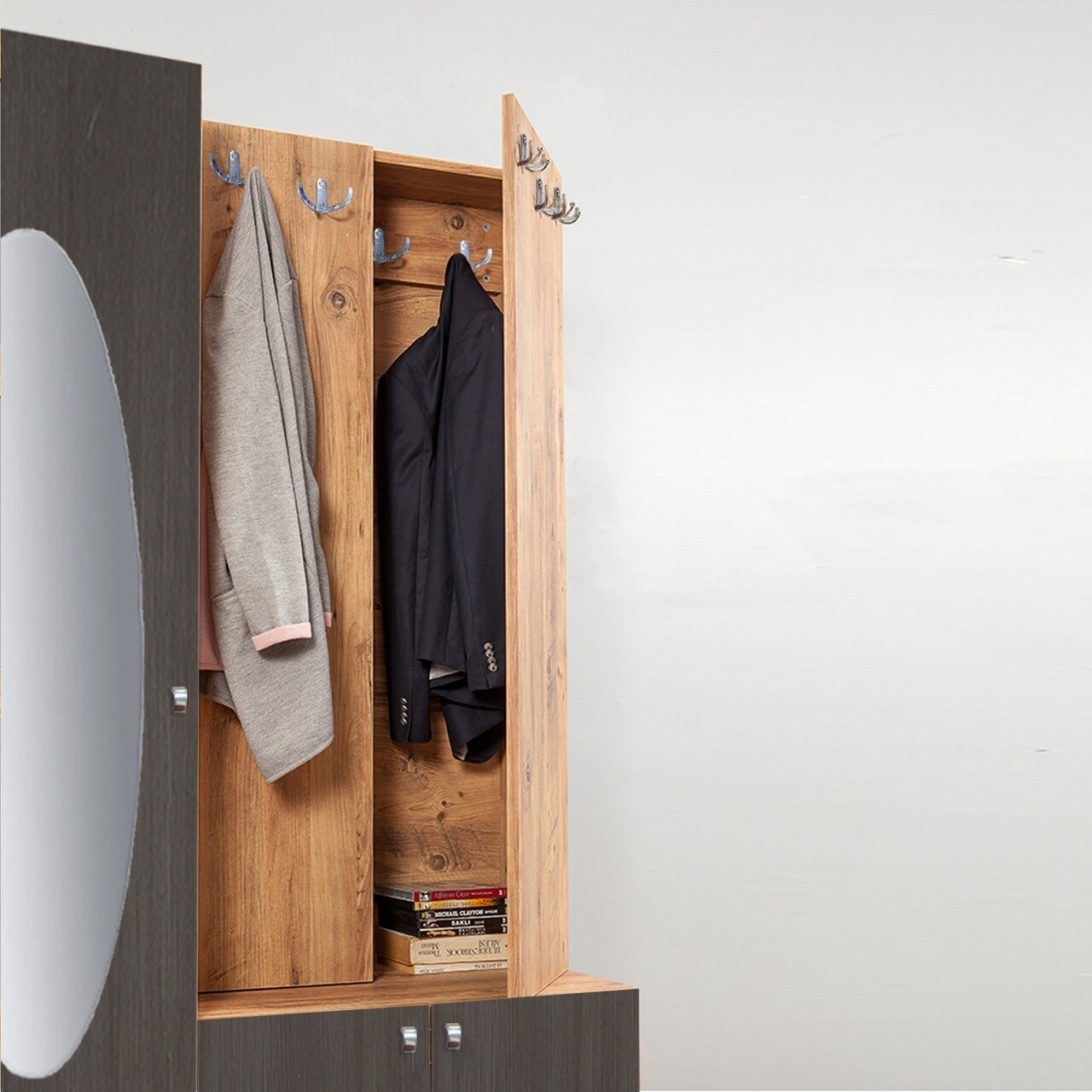 Dulap cu pantofar, cuier si oglinda Sihirli Atlantic Anthracite, Vella, 125x36x196 cm