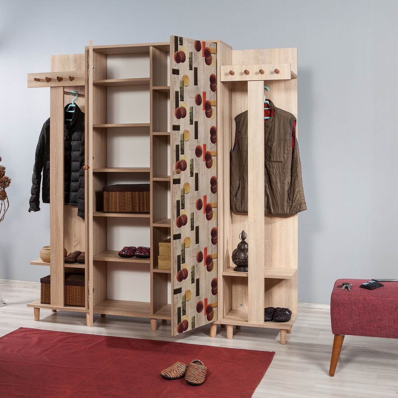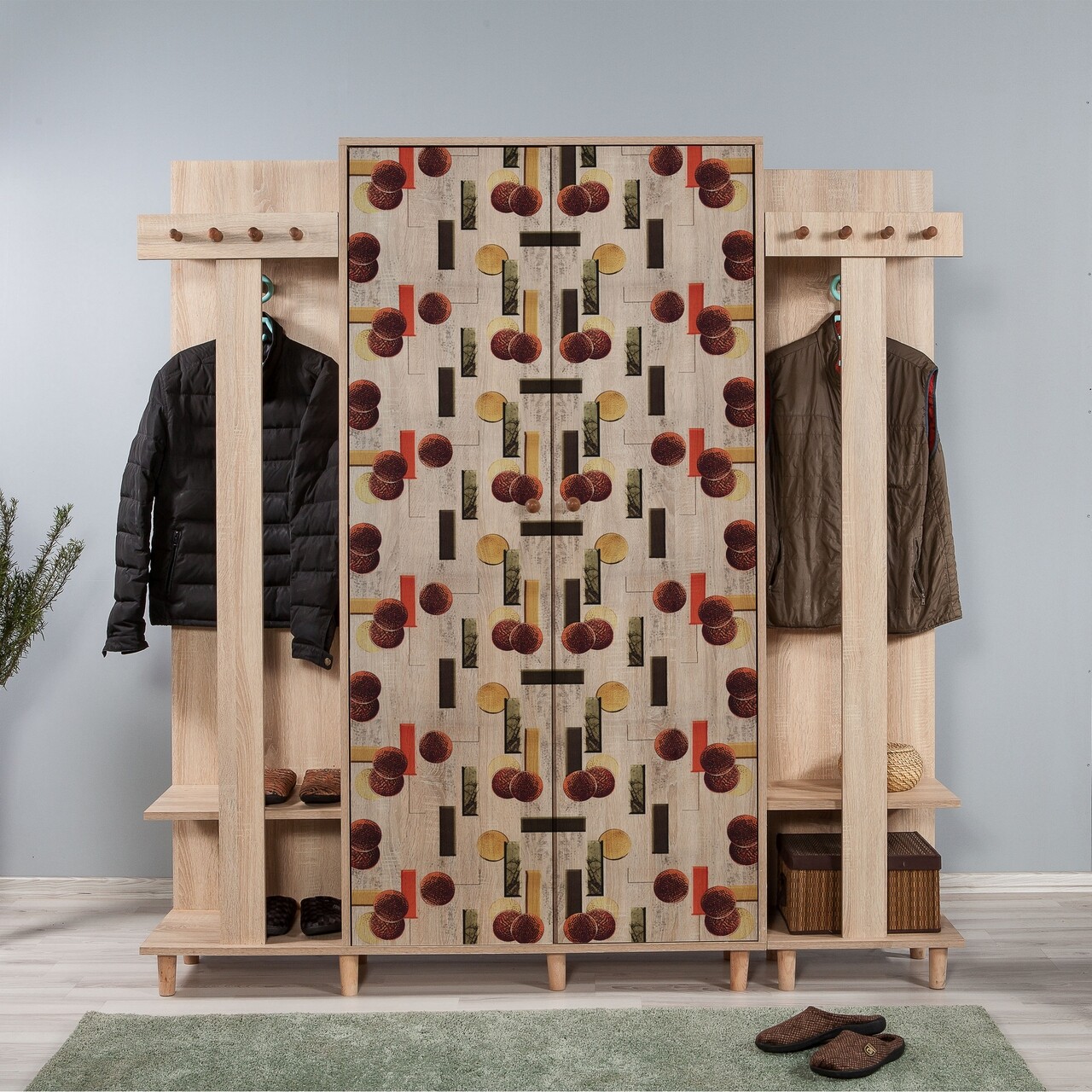 Dulap cu pantofar si cuier Garmanto 180-521, Vella, 180x36x194 cm, multicolor