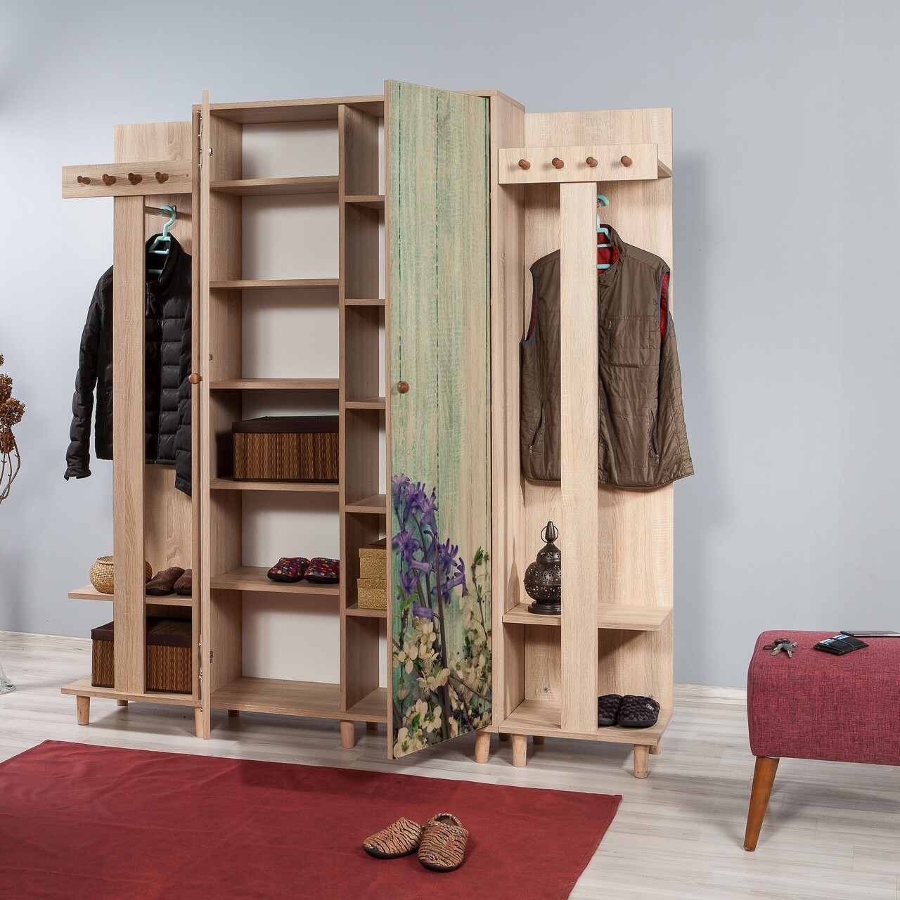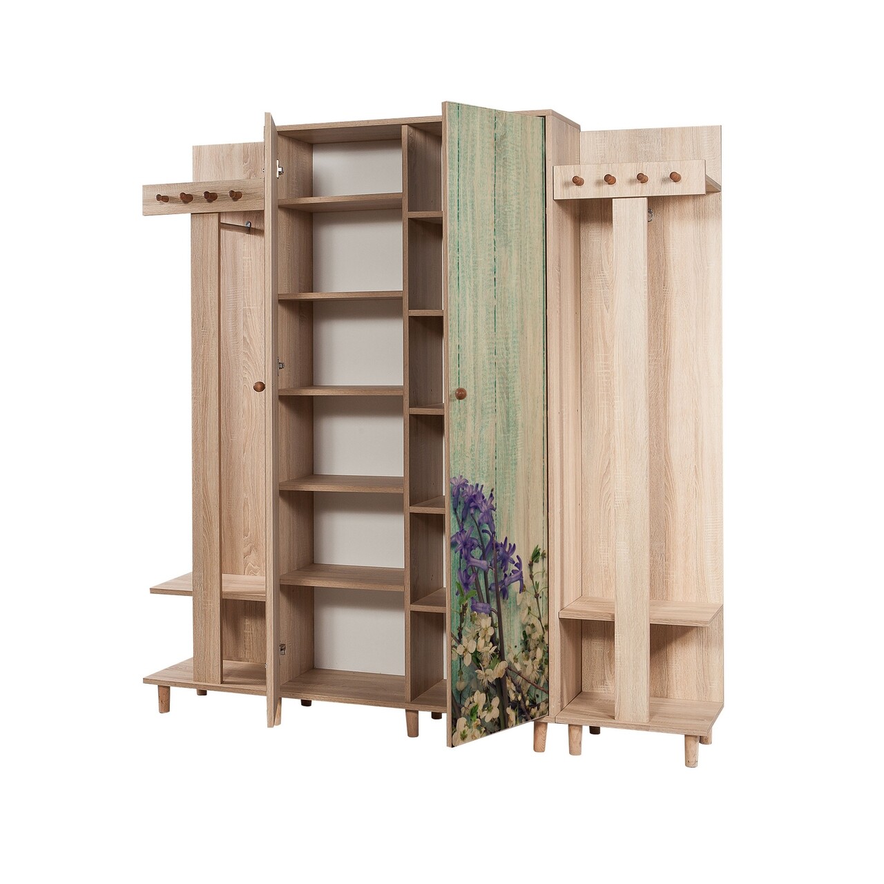 Dulap cu pantofar si cuier Garmanto 180-727, Vella, 180x36x194 cm, multicolor